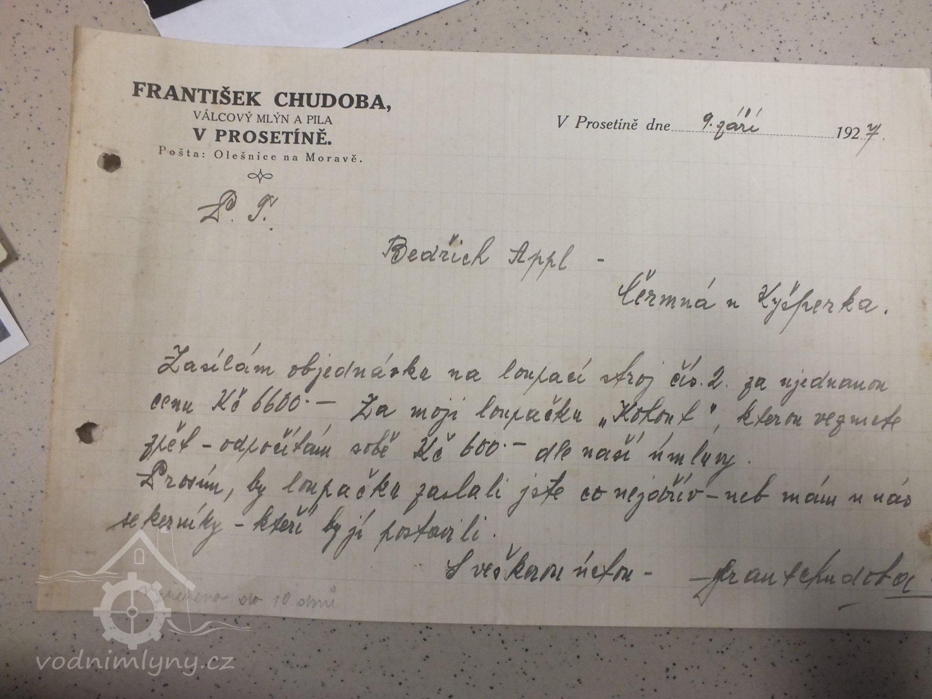 V roce 1930 vlastní mlýn a pilu František Chudoba.