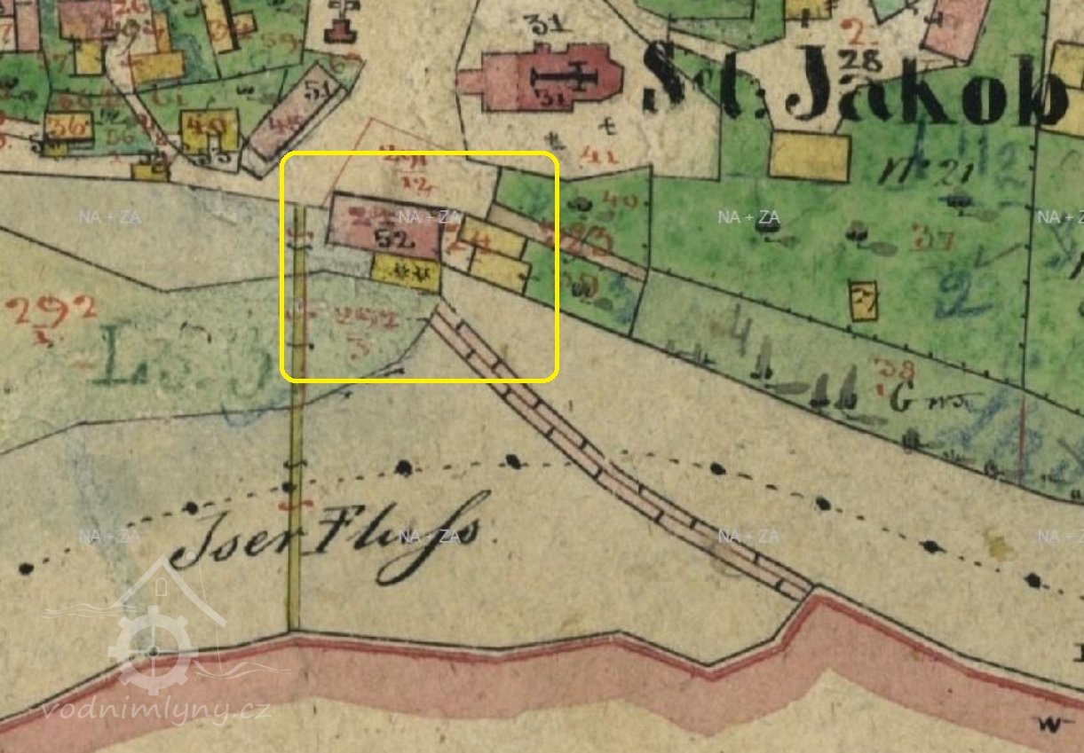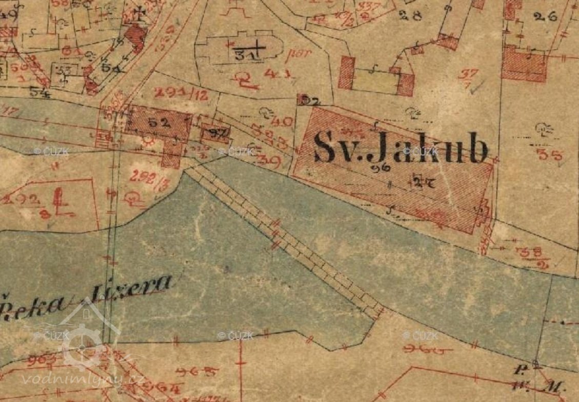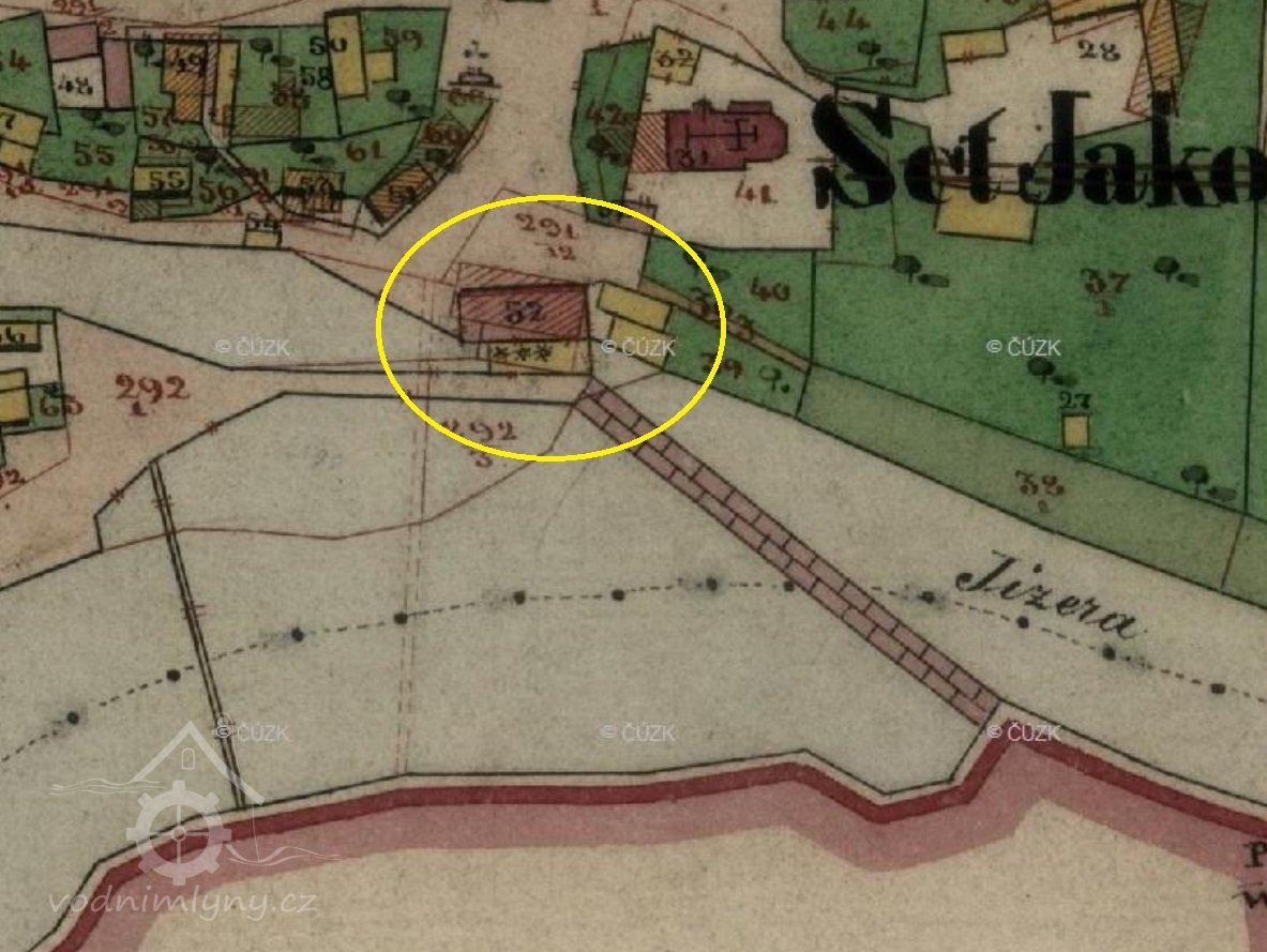 Mlýn stojí na pravém břehu Jizery u velkého jezu.