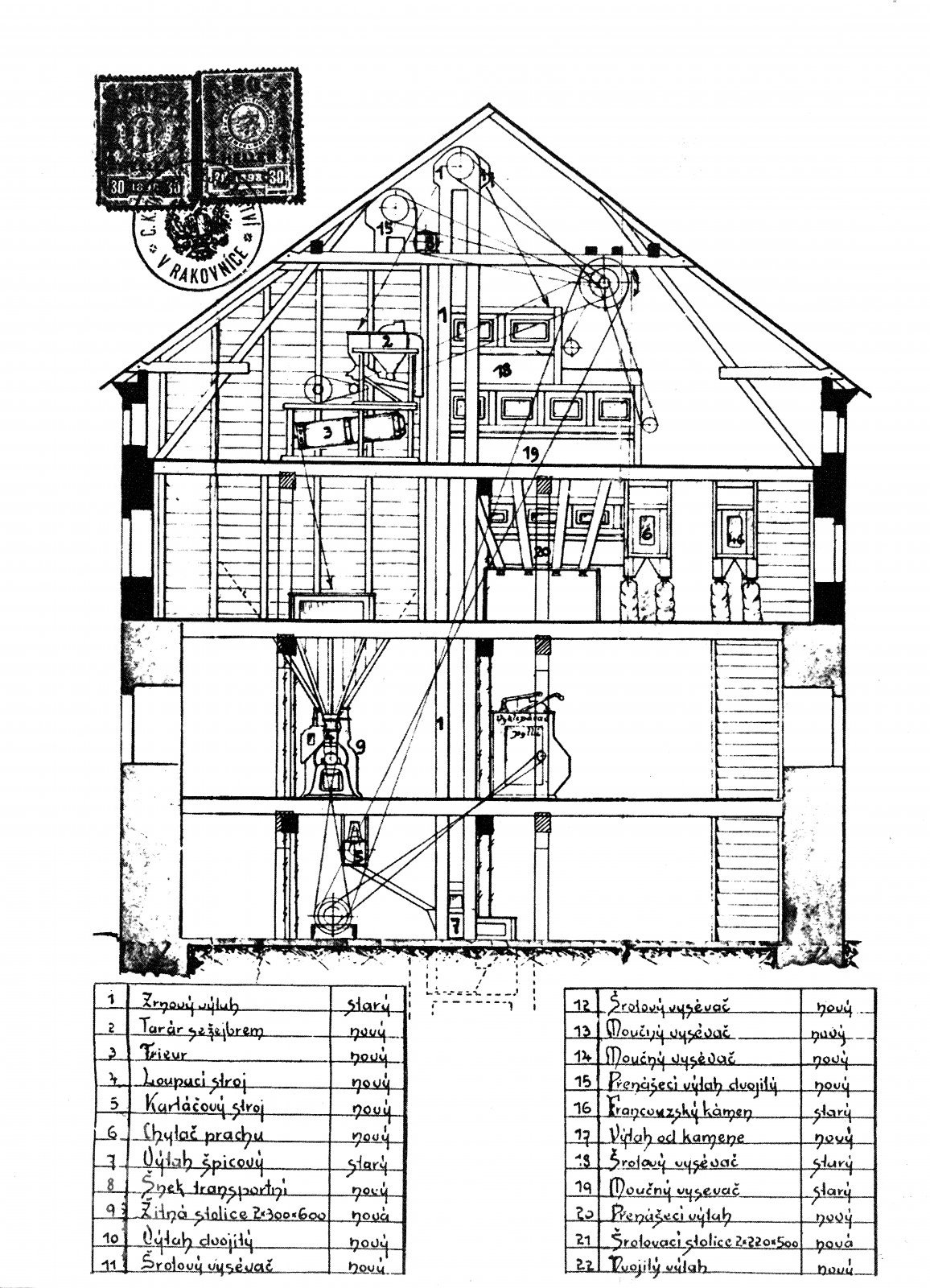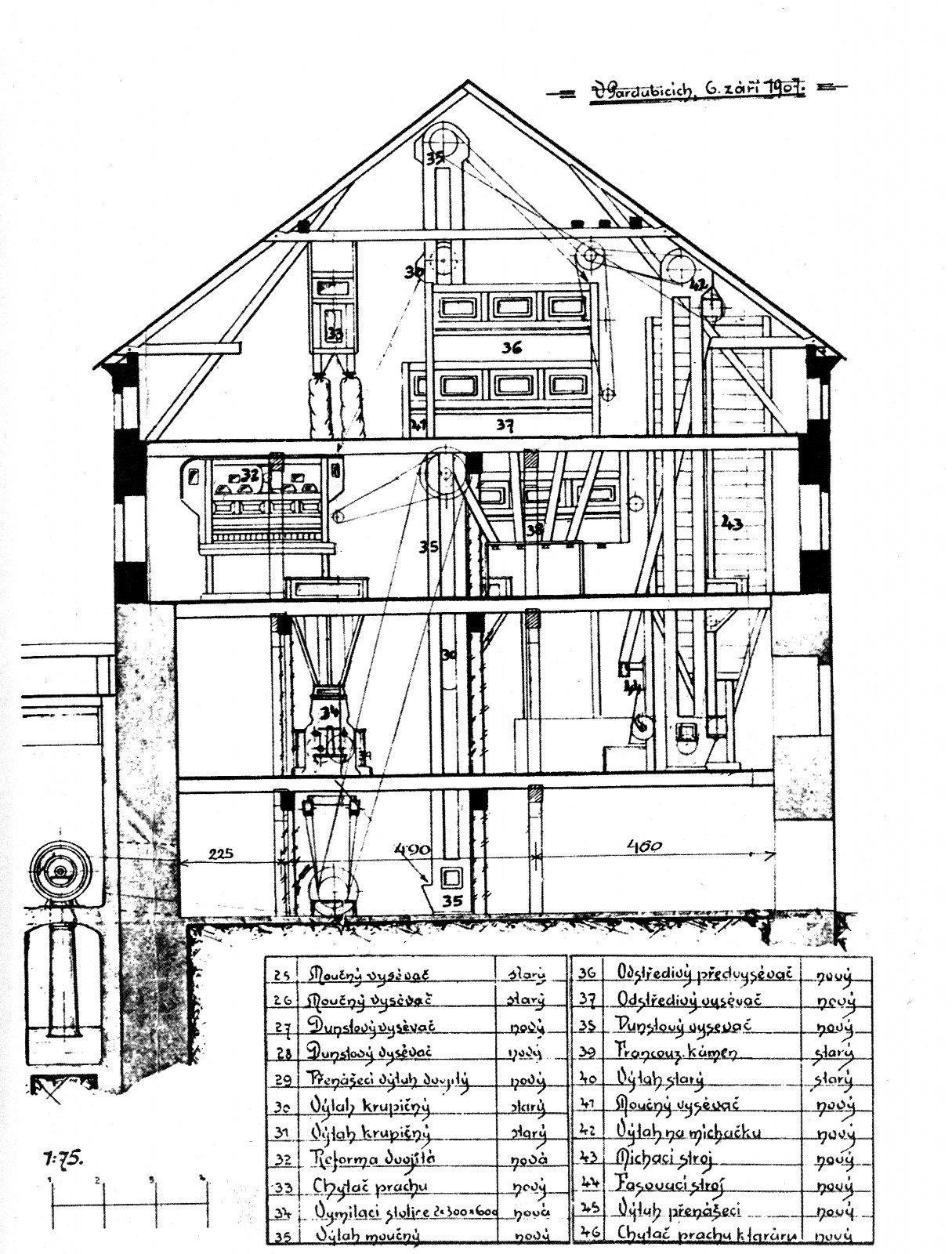 PopisV roce 1930 zde byla turbína Francis o hltnosti 150 l/s, na spádu 6 m a výkonu 9 HP.