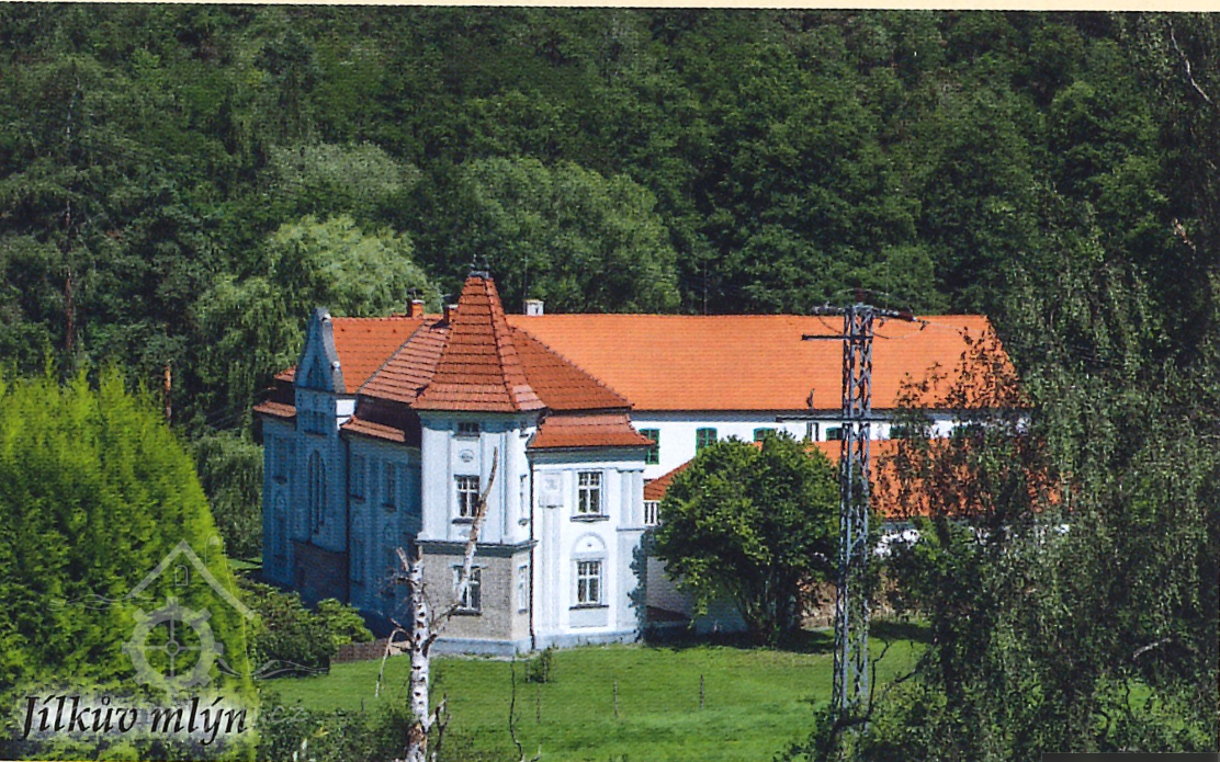 Areál Nového neboli Jílkova mlýna /zvaného také Dobřískov /, nalézá se na levém břehu řeky Klabav, přibližně 3 km nad jejím ústím do Berounky, na severním okraji obce. Jednotlivé budovy jsou uspořádány na téměř obdélném půdorysu, mírně se rozšiřujícím k severu, podél náhonu 200 m dlouhého. Tvoří téměř uzavřený dvůr. Přístupová cesta odbočuje ze silnice Chrást - Smědčice a míří ke dvoru proti proudu řeky, od severu. Vpravo od vstupní brány se nachází moderní dominanta celého hospodářství - vila z r. 1920. Je postavena na nepravidelném půdorysu, který má nejblíže k obdélníku. Architektonické pojetí lze označit za individualistickou modernu, nesoucí řadu prvků doznívající secese a nastupujícího kubismu. V blízkém okolí /Nová Huť/ lze nalézt i další stavby shodného autorského rukopisu Budova je zčásti postavena na základech starého domu z 1. pol. 19. stol. Není podsklepena má dvě nadzemní podlaží. Zdivo novostavby je převážně cihlové. Fasáda v přízemí provedena z režného zdiva /bílé cihly/, zbytek v jednobarevném břízolitu. Je bohatě členěna /římsy, náznaky pilastru, polosloupy ve štítě/, vyznačuje se množstvím zdobných prvků. Okna jsou orámována, zvýrazněny parapety Ze severního průčelí vybíhá mělký rizalit, prostupující římsou, ukončený tvarovaným štítem. Rozměrné obloukové okno v ose rizalitu, rozdělené sloupky do třech svislých nestejně vysokých pásů osvětluje halu se schodištěm. Okénka ve štítu vedou do půdního prostoru. Průčelí dále obsahuje vlevo od rizalitu jednu, vpravo pak dvě okenní osy. V severozápadním rohu z budovy vybíhá úhlopříčně rizalit, též prostupující římsou, zakončen jehlancovitou střechou. Tvoří jakousi obdélníkovou věž, navazující na severní průčelí malou lodžií. Vstup na ni je možný prosklenými dveřmi z patra. Každá stěna rizalitu má po jedné okenní ose, podobně jako fasáda domu orientovaná západně. Naproti tomu průčelí východní obsahuje 3 okenní osy. Dvorní průčelí / jižní / má opět v ose mělký rizalit, který ale v pravé části, cca ve 2/3 šířky pokračuje do dvora v hloubce asi 1,5 m, Za dvěma klenutými oblouky je před hlavním vstupem do domu vytvořen krytý prostor - „loubí".