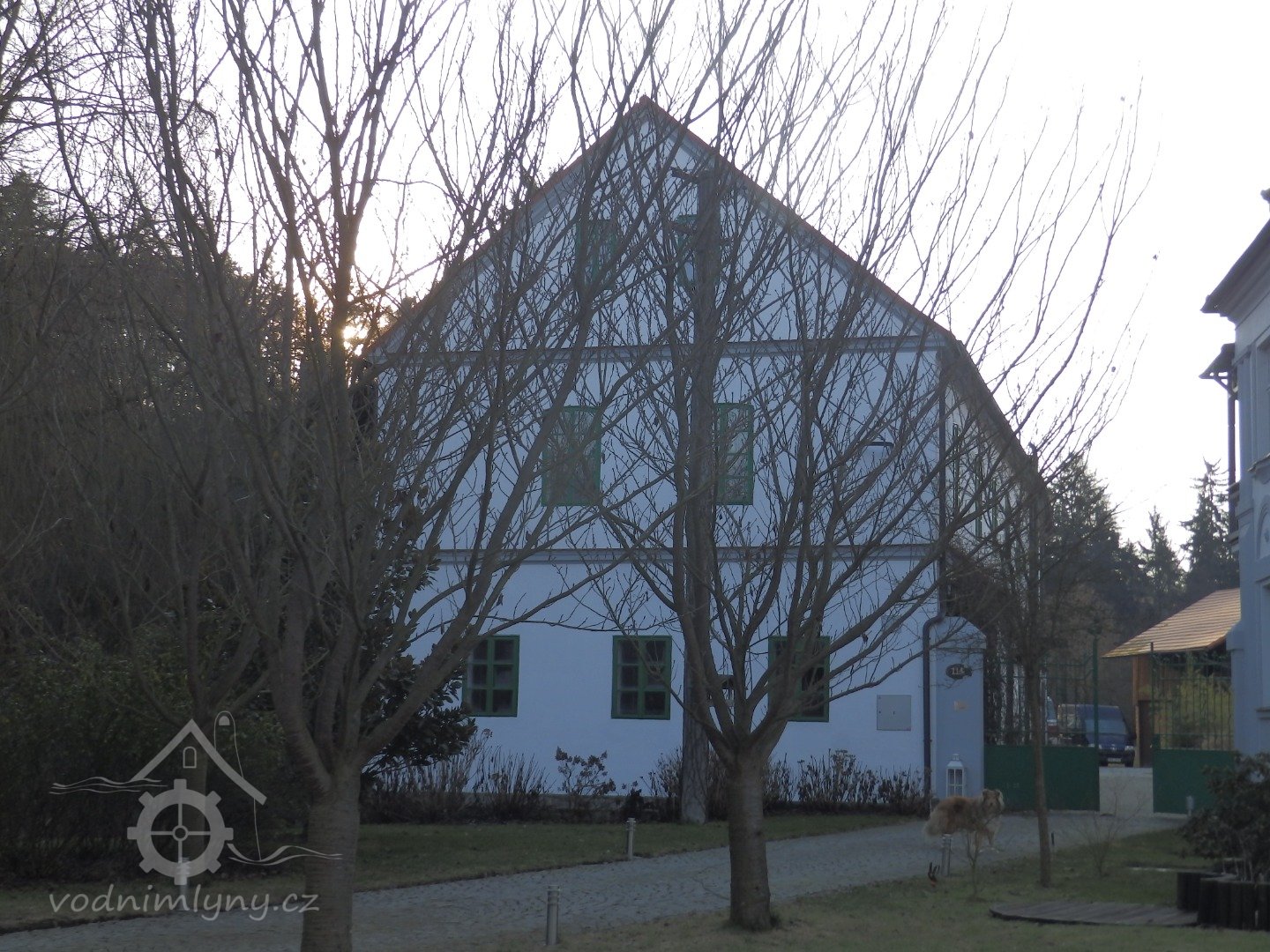 Vlevo od vstupní brány je původní, pravděpodobně nejstarší budova mlýna, sestávající z obytné části a mlýnice. Na ni navazuje dvoupodlažní sýpka, která uzavírá východní stranu dvora. Dvorní průčelí budovy má 5 okenních os. V přízemí jsou ve dvou osách vstupní dveře /dvojkřídlé, dřevěné /. Severní stěna se štítem orientovaná vně dvora má v přízemí 3 v patře dvě a ve štítě dvě okenní osy. Východní stěna, k níž je přistavěna elektrárna, má dvě okenní osy. V úrovni patra se nachází dřevěná pavlač, na kterou je možné vstoupit dveřmi ze šalandy nebo po jednoramenném dřevěném schodnicovém schodišti ze zahrady. Fasáda je bez ozdob, vodorovně dělená kordonovou římsou. Podokapní římsa profilovaná. Obytná část sestává ze dvou obytných místností a chodby s původní pecí. Inventář z velké části původní, zachovalý, /malované skříně, truhly, nádobí.../ V jižní části přízemí byla při přestavbě v r. 1940 prohloubena podlaha přibližně o 1 m pod úroveň dvora a byla zvýšena původní podlaha přízemí. Vznikl tak suterén, do kterého byly umístěny transmise, elektromotor pro pohon mlýnských strojů, vč. rozvodné a ovládací desky. V zvláštní místnosti s předsíňkou byl umístěn stabilní naftový motor Škoda /z r. 1932/. Výfukové potrubí je vedeno po vnější stěně souběžně s okapem a je ukončeno nad římsou. Do zvýšeného přízemí byly umístěny těžké mlýnské stroje - tj. pšeničná a dvě žitné stolice a "francouzský kámen". Dřevěné násypky strojů procházejí do patra, kam byly také umístěny vysévače /pšeničný, žitný/, čistící stroj a míchací komora na mouku. V severovýchodním rohu patra je tzv. šalanda, sestávající ze dvou místností, oddělených od prostoru mlýnice lehkou příčkou. Lehké stroje byly umístěny také do půdního prostoru: třídič pšeničný, žitný a vysévače. Vertikální doprava zajištěna obvyklými kapsovými dopravníky v dřevěných šachtách. Všechna schodiště provedena jako schodnicová, dřevěná. Stropní konstrukce a krovy jsou dřevěné, střešní krytina pálená, je provedena z bobrovek /korunové/. Střecha sedlová. Všechna okna jsou také dřevěná, dvojkřídlá. Každé křídlo děleno vodorovně do 4 polí. V obytné části jsou okna dvojitá, jinak jednoduchá. Jsou /podobně i dveře/ mořena do tmavého odstínu.