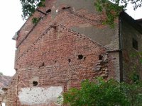 Východní stěna, k níž je přistavěna elektrárna, má po pravé straně dvě okenní osy.