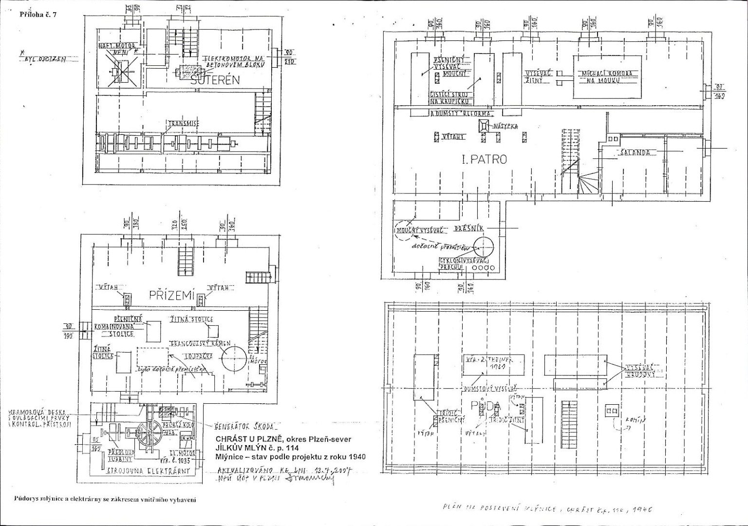 V patře nad strojovnou elektrárny je umístěn moučný vysévač a vysávač prachu.