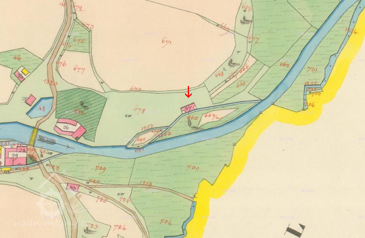 po r. 1900 hamr přestavěn na obilní mlýn s jedním složením