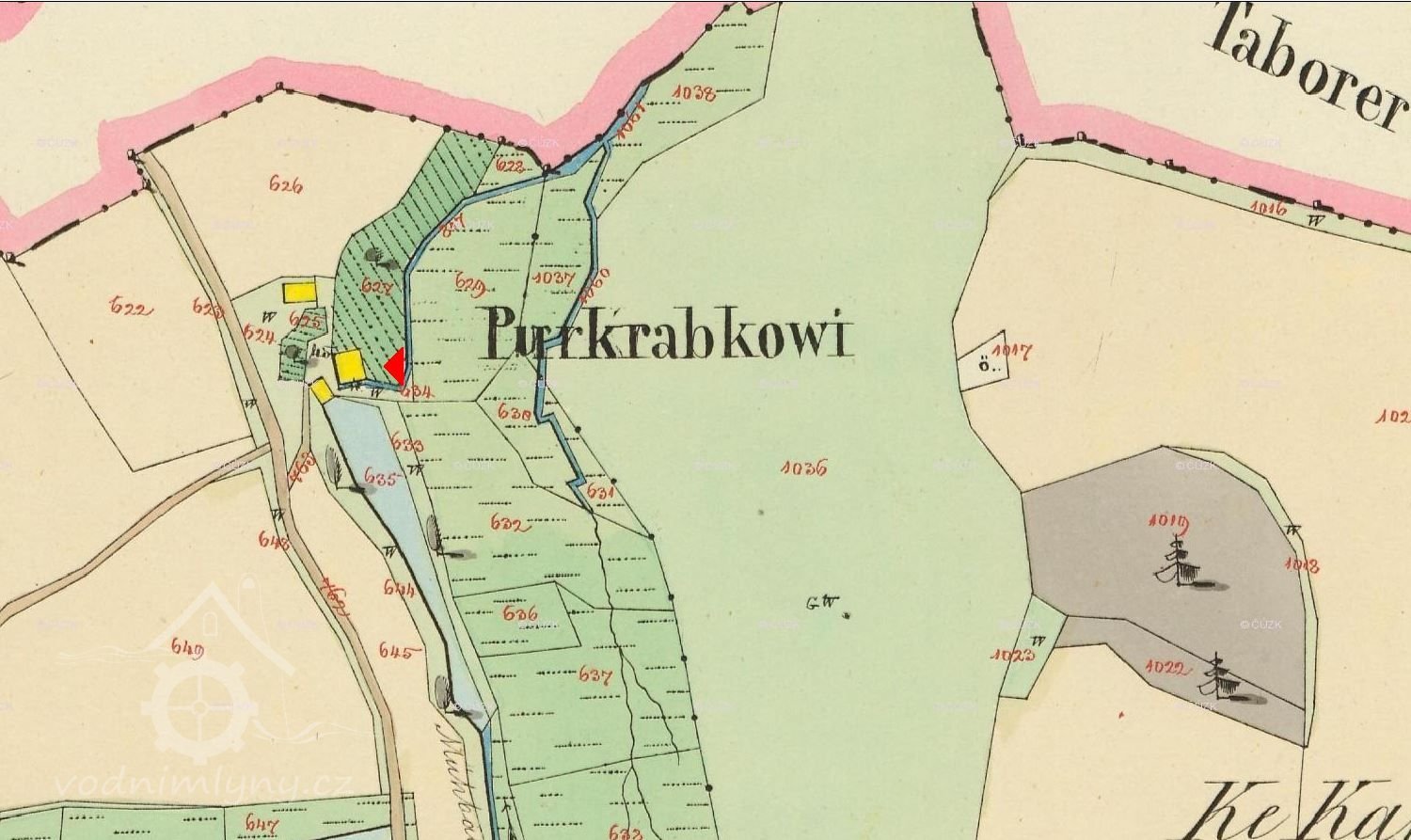 Popis1930: 1 kolo na svrchní vodu, hltnost 0,133 m3/s, spád 3,5 m, výkon 4,03 HP