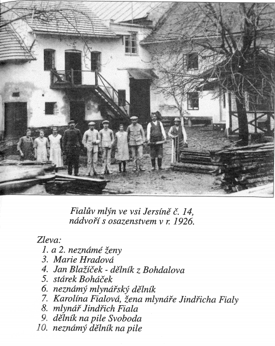 1825 od černického panství koupil mlýn Jiří Fiala (*1799)n z mlýna v Polné, 1825 se oženil s Klárou v Polné. Po její smrti si vzal Rozalii (*1814 v Řehořově).