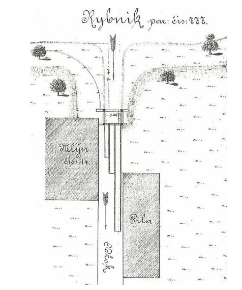 Starý mlýn byla jednoduchá přízemní stavba, stál na pravé a pila na levé satrně mlýnské strouhy.