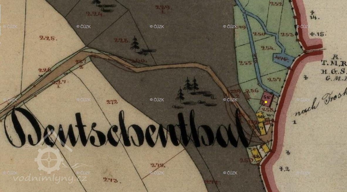 v tereziánském katastru uveden mlýn o jednom kole se stoupou, majetku panství Kost