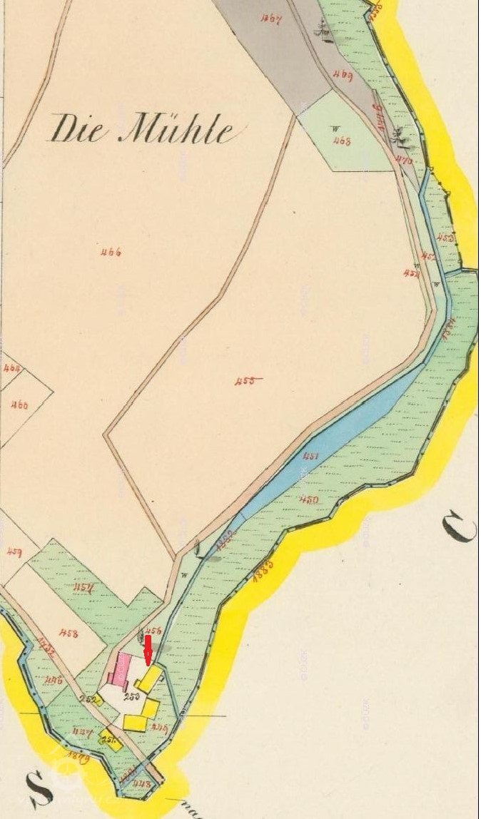 V roce 1922 je jako majitel nemovitosti čp. 1 uváděn Ludwig Schmidt v souvislosti s jeho žádostí na obec, aby vodovodní vedení bylo prodlouženo až k jeho nemovitosti, přičemž se zavázal uhradit polovinu stavebních nákladů z vlastních.