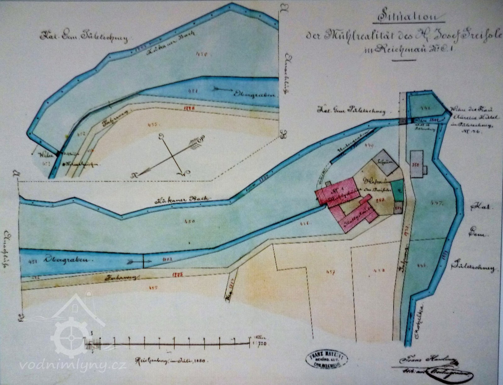 PopisV některých pramenech uváděna 2 vodní kola, ve vodní knize jen jedno prům. 7,48 m a šířka 56 cm.