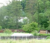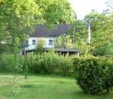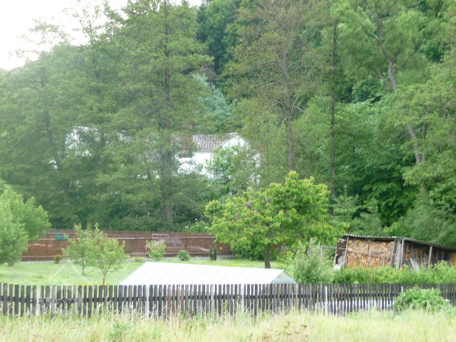 Velký mlýn stojí na levém břehu Úterského potoka uprostřed velké zahrady zarostlé stromy.