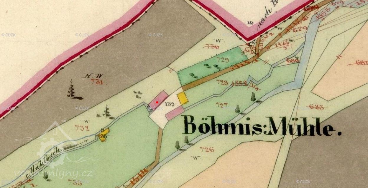 1804 Franz Posthorn, mlýn o 3 složeních na středně stálé vodě, platí roční činži 15 zl. 20 kr.