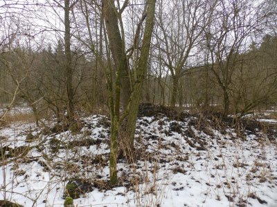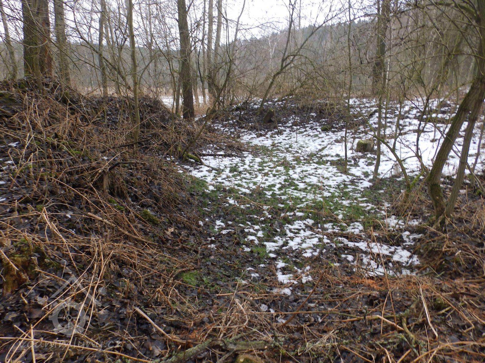 Zaniklý mlýn jižně od Kamenných Žehrovic. Na místě patrné jen základy, dochován pouze sklep.