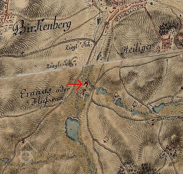 Roku 1714 koupil od obce mlýn i s hospodářstvím a s flusárnou za 2 200 zlatých šichmistr Matěj Alis. Ve mlýně zavedl i šenk. Obecní starší proti tomu protestovali s odůvodněním, že magistrát Příbrami roku 1713 povolil šenk piva jen pod Zeleným u studánky (pod svatohorskou studnou), kde pracovali havíři. V roce 1735 se na mlýně uvádí již jen Veronika, vdova po Matěji Alisovi. Od ní jej roku 1746 koupil za 5 000 zl. syn Konstantin Alis, a to i s výrobnou potaše a pilou. Navíc příští rok žádal o dovolení kupovat popel. Roku 1749 mlýn s pilou koupil rovněž za 5 000 zl. František Alis. 10. dubna 1764 se o Alisovy statky podělili Leonardo Tomáško, který za 1 750 zl. odkoupil mlýn, a J. Šubrt, který zaplatil 1 700 zl. za hospodářské stavení. Obě části byly znovu spojeny roku 1769, kdy je za 2 350 zl. koupil Arnošt baron z Nuvertu, navíc s právem vinopalným. V roce 1778 se uvádí, že mlýn měl po otci Josef Tomáško. V roce 1788 patřila hospoda Emaus a výrobna potaše rychtáři Leonardu Tomáškovi. Později je jako majitel uveden Wolf Moser. Z roku 1791 je zmínka, že Ignác hrabě z Nuvertu se hlásil o podíl své matky na mlýně.