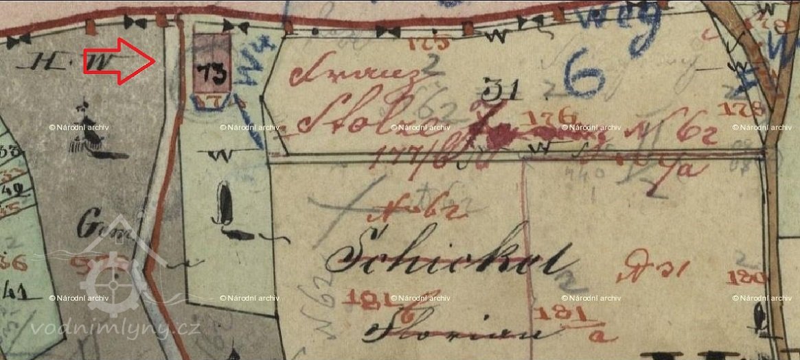 V roce 1845 postavil na Červeném potoce v údolí na samém severním okraji katastru obce Čermná Florian Schickel z čp. 31 nový mlýn, který měl čp. 62. Náklady na stavbu činily 3 095 florenů a 40 krejcarů.