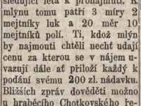 V r. 1863 byl mlýn nabízen k pronájmu. (RR)