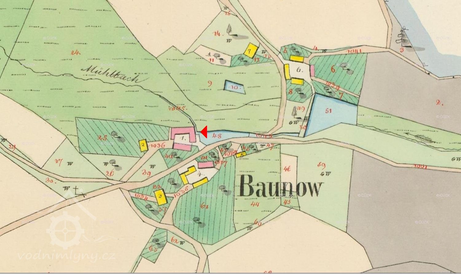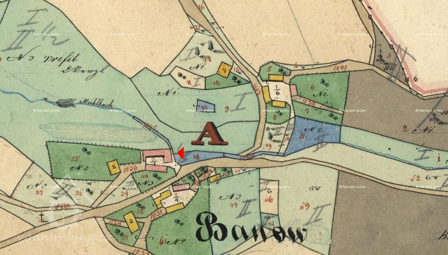 Na bývalý mlýn ukazuje stoka, jež se až na naše časy poněkud uchovala. Mlýn připomíná se v Báňově ještě roku 1788...“