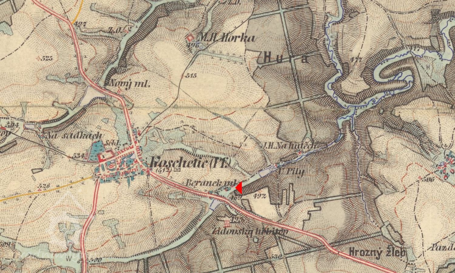 Antonín Beránek mlynář, syn Vojtěcha Beránka mlynáře z Leštiny čp.16 a oo20.10.1844 Kateřina roz. Čmuchová (*1825; +??) z Košetic čp.60