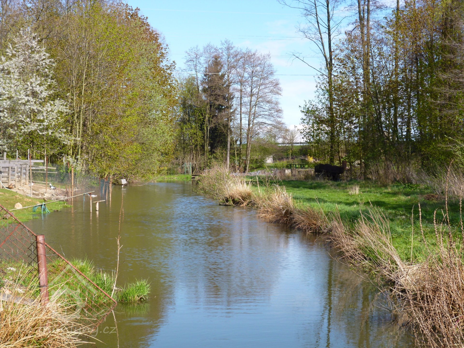 1936: voda z rybníka přitéká náhonem cca 750 m dlouhým, voda se do náhonu pouští krajním levým otvorem stavidlového jezu rybníka. Před mlýnem je náhon ukončen vantroky z kamenného zdiva délky 10 m, šířky 1,4 m, hloubky 0,8 m. Vantroky jsou uzavřeny dřevěnými stavítky. Dále se voda pouští do vantroků dřevěných, délky 3,3 m, šířky 1,4 m, hloubky 0,27 m, vedoucích ke kolu.