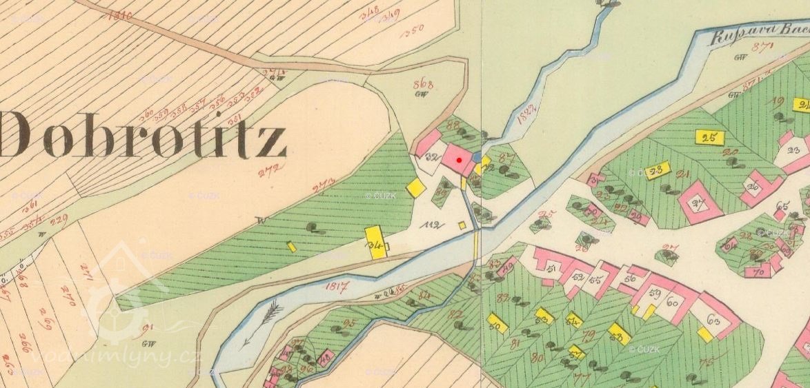 Mlýn Vantrocký (čp. 36) je zmiňován v letech 1365 a 1667. Dochovala se jeho kniha purkrechtní z roku 1597.