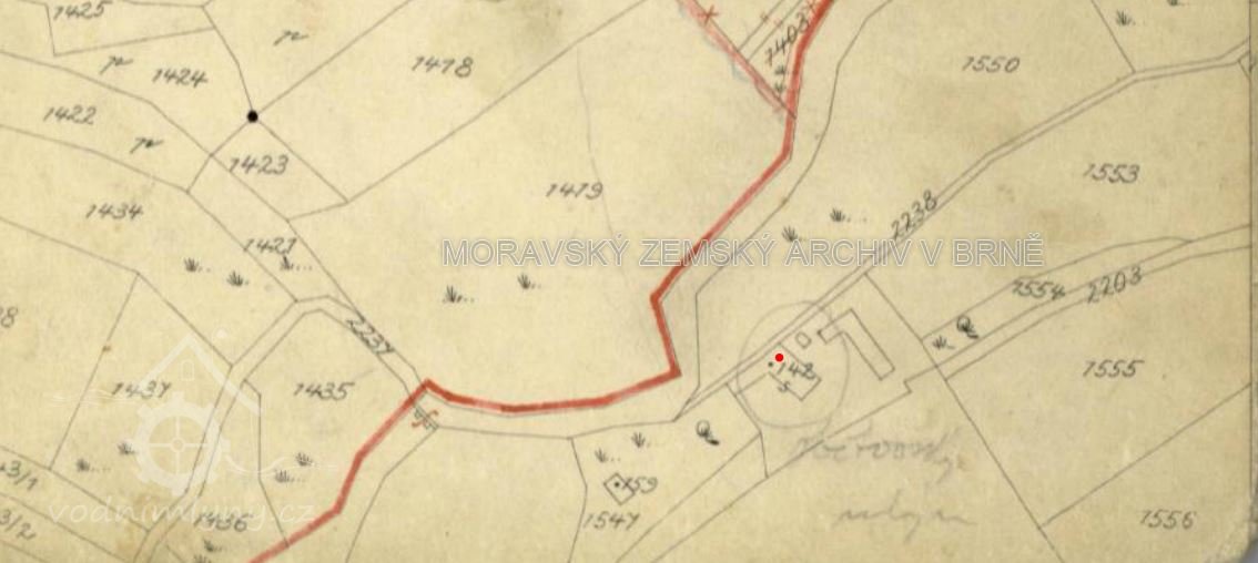 Mlýn stál v místech mezi věží a přehradní hrází Luhačovické přehrady. Mlýn a pila byly rozbořeny při budování přehrady a následně zatopeny.