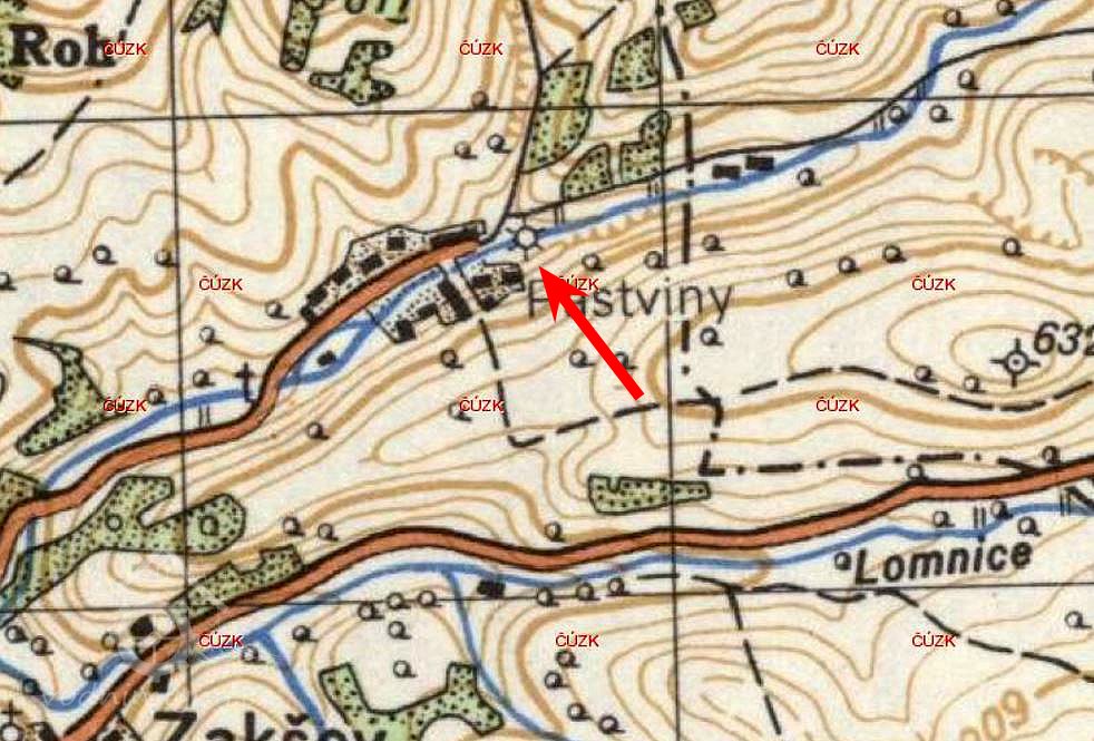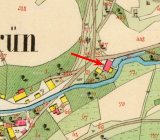 Mlýn se nacházel na SV okraji obce, asi 250 m od návsi, u potoka Lomnice.