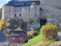 Protiklad podhradí a hradu, půvabná lidová barok. stavba, dnes součást, konfigurace zámku.