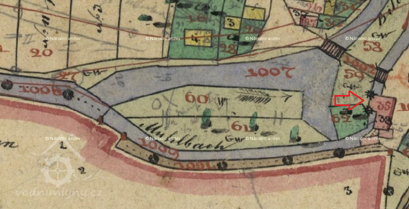Mlýn v městečku Obrnicích, v roce 1930 již nebyl v provozu. Za války nad mlýnem zřízena požární nádrž, dnes na místě mlýna hasičská zbrojnice, část původního areálu však zachována a připojena k novostavbě.
