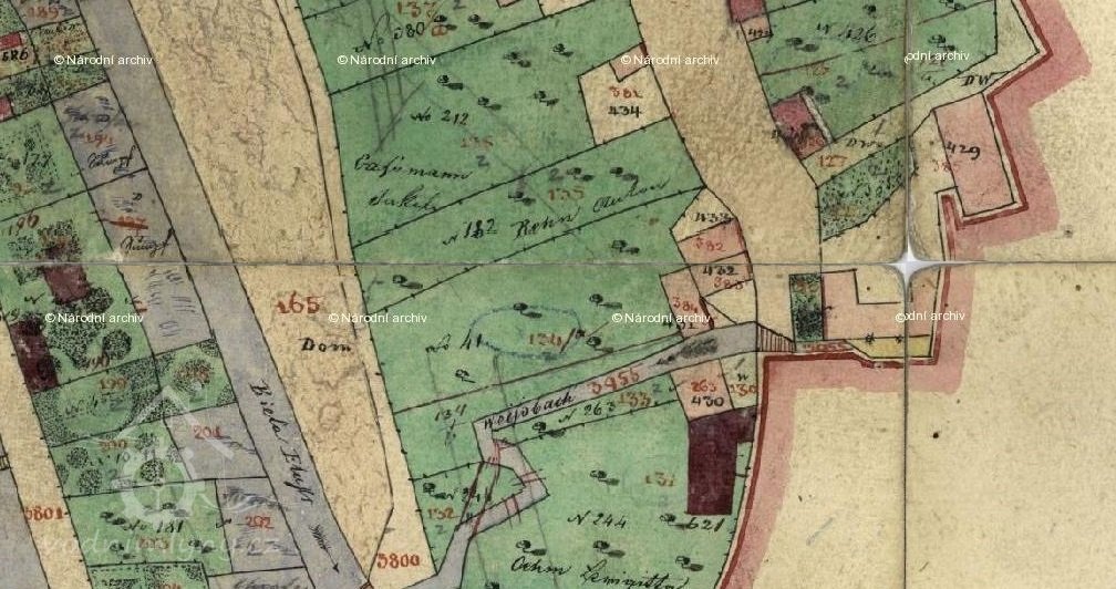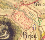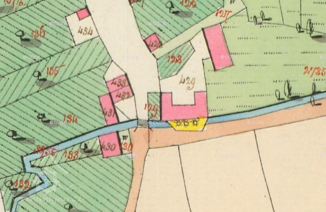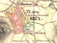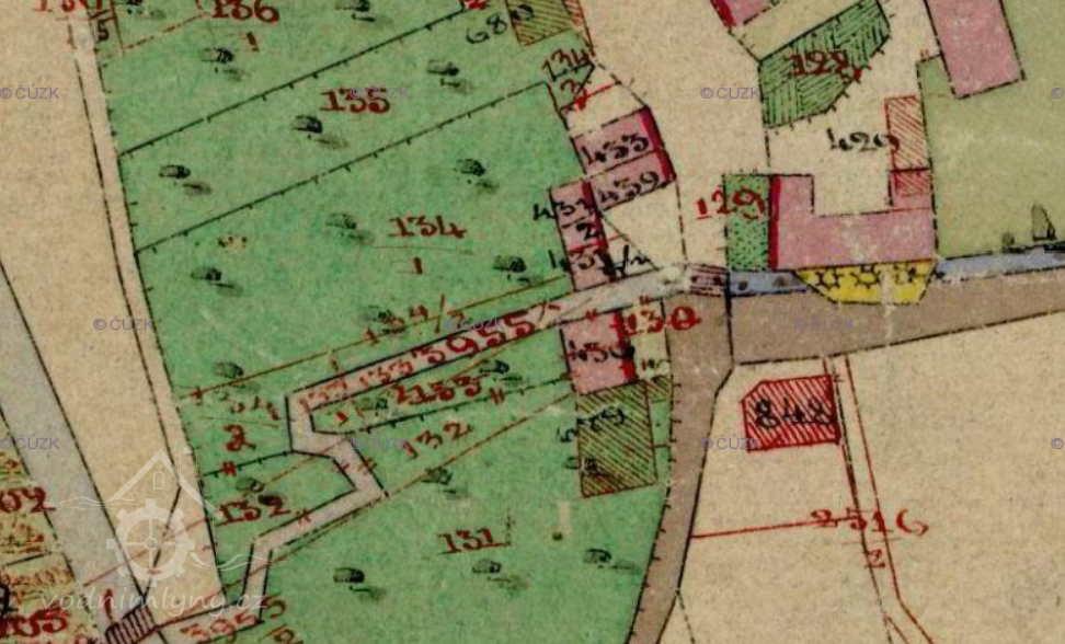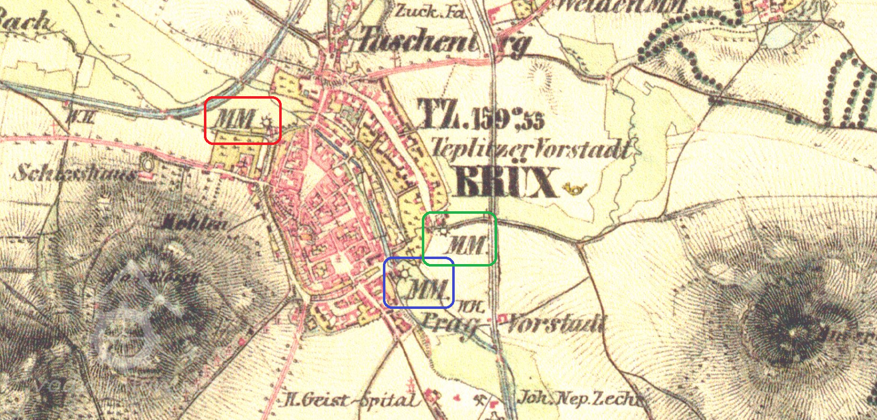 Třetí z trojice mlýnů u středověkého jádra města Mostu, ležel poněkud východněji. V roce 1930 již nebyl v provozu, 1950 je na jeho místě zbořeniště.