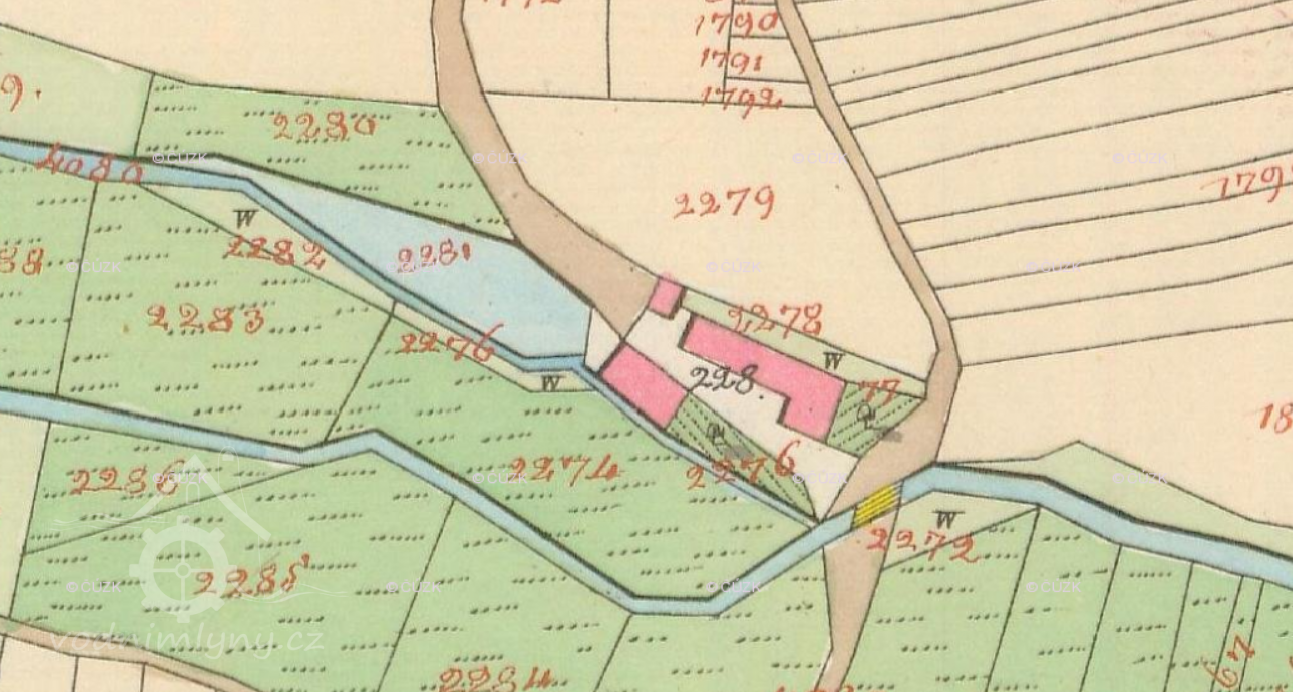 1930: 1 kolo na svrchní vodu, hltnost 0,1462 m3/s, spád 5 m, výkon 6,33 HP