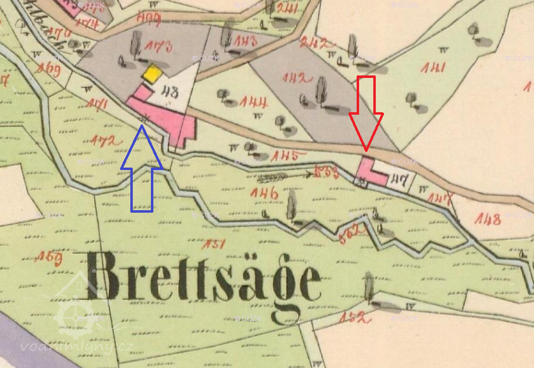 47, později 50 (mlýn); 48, později 40 (pila)