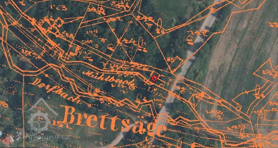 Popis1930 (mlýn): 1 kolo na svrchní vodu, hltnost 0,054 m3/s, spád 5,3 m, výkon 2,5 HP