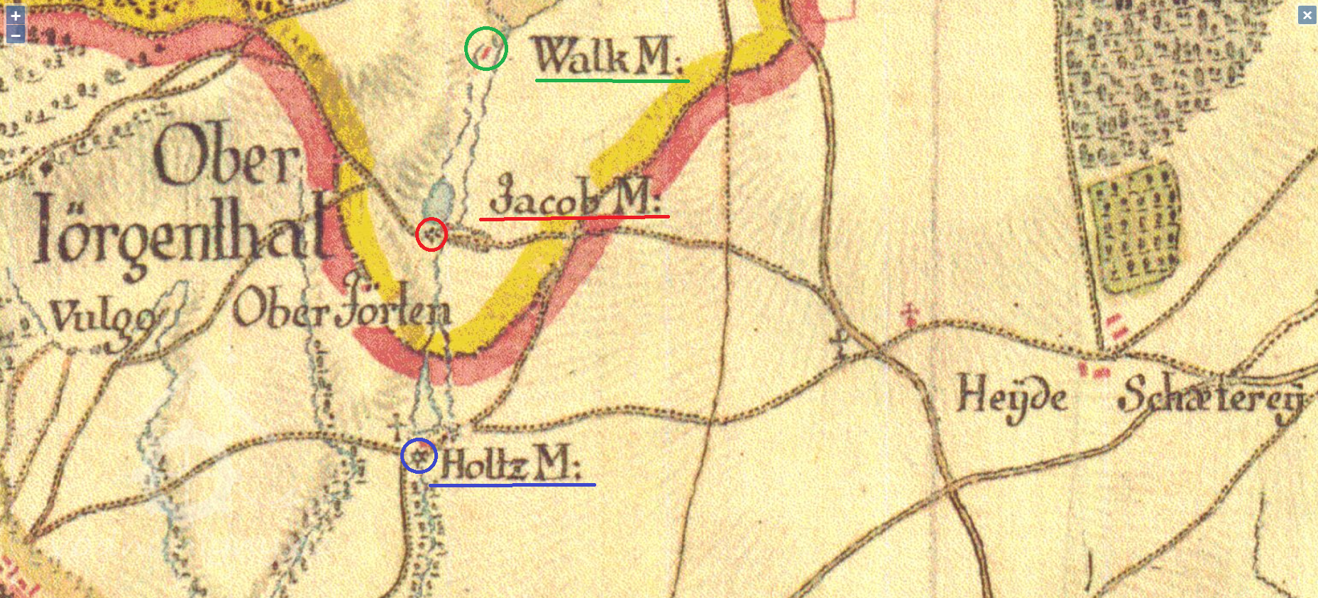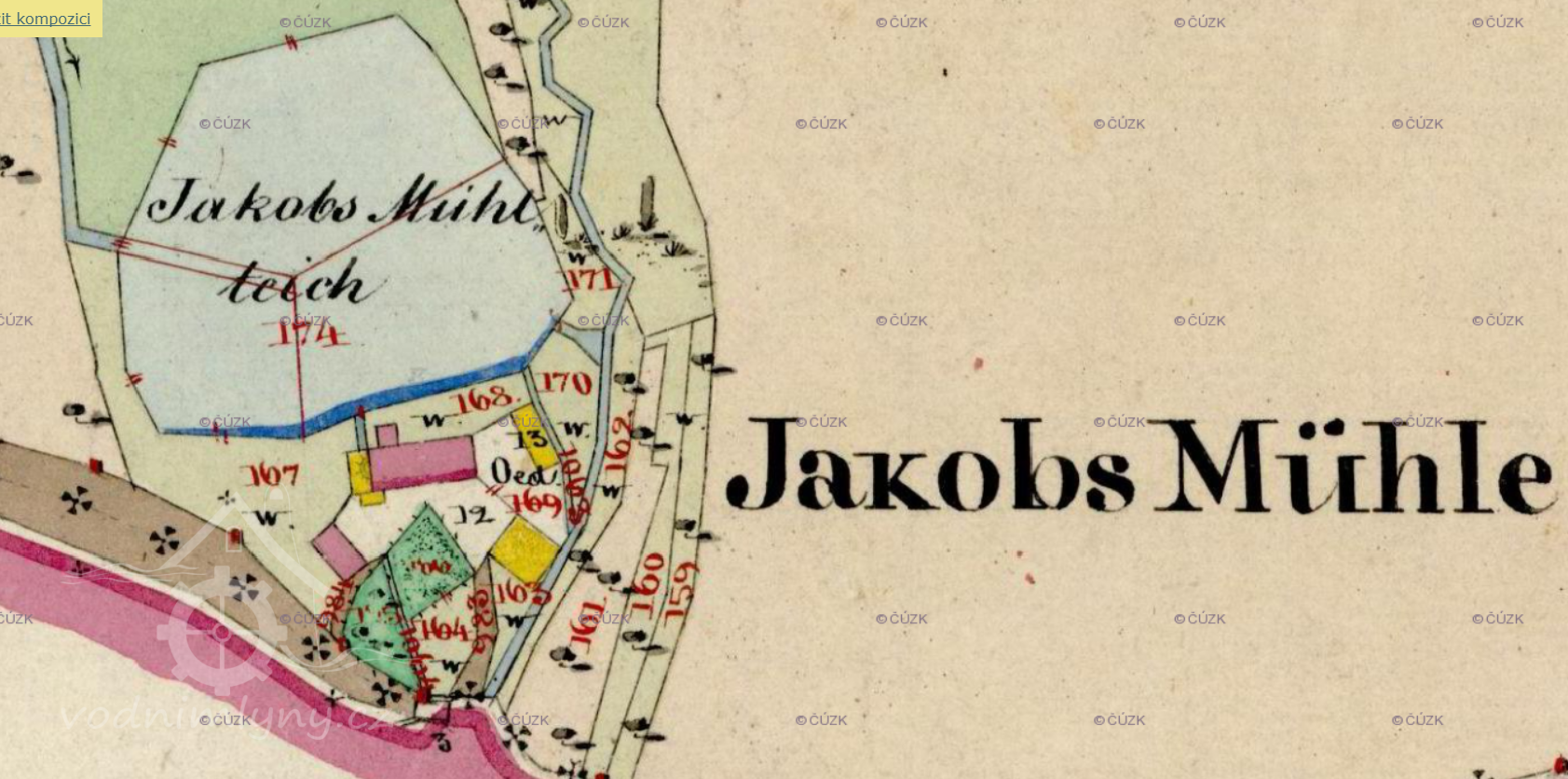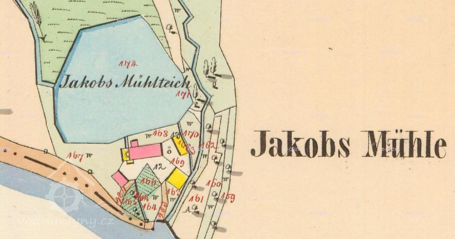 Kolem mlýna vedla stará obchodní cesta do Saska, velmi důležitá, jak po­tvrzuje příkaz k jejímu řádnému udržování vydaný Karlem VI. v roce 1740. Cesta však pozbyla svého významu po otevření nové okresní silnice z Mostu do Mníšku v r. 1844 a výstavbou silničního spojení z Janova do Horního Jiřetína. Jakubův mlýn zůstal stranou provozu, jenž se ubíral novou trasou, což nezůstalo bez vlivu na obchodní situaci podniku.V rámci koncentrace dřevařského průmyslu byla tato pila zrušena.