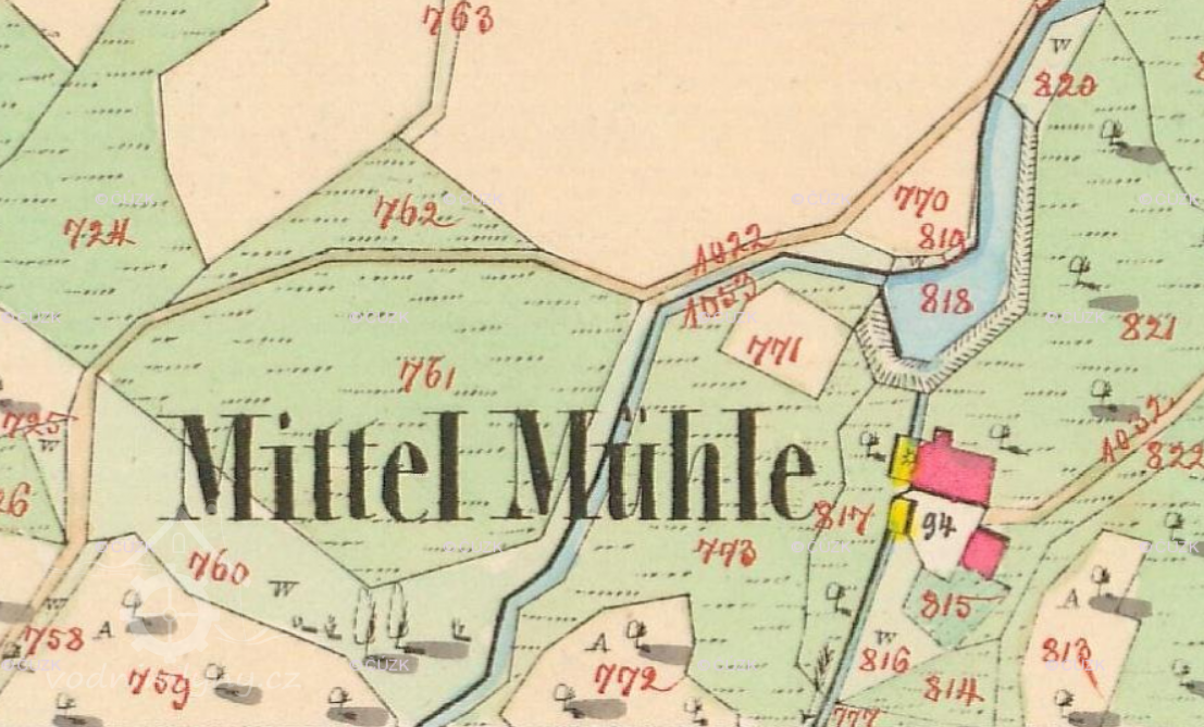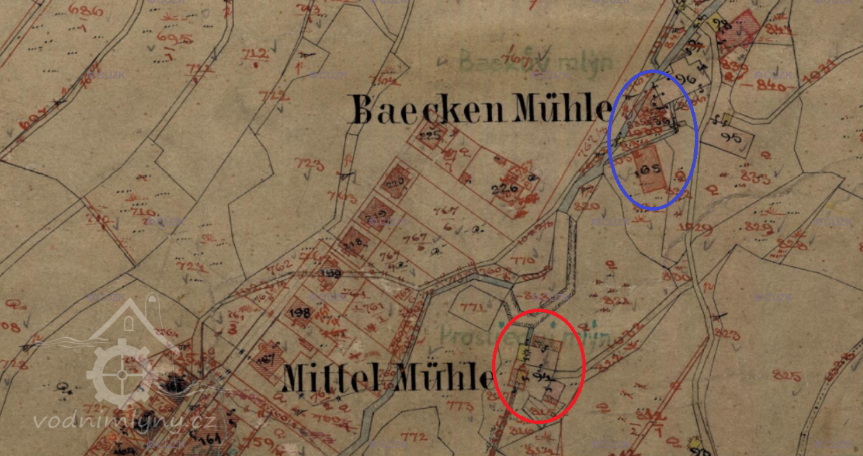 Popis1930: 1 kolo na svrchní vodu, hltnost 0,147 m/s, spád 4,5 m, výkon 5,7 HP