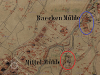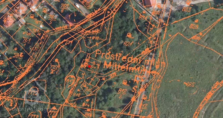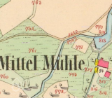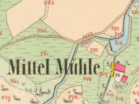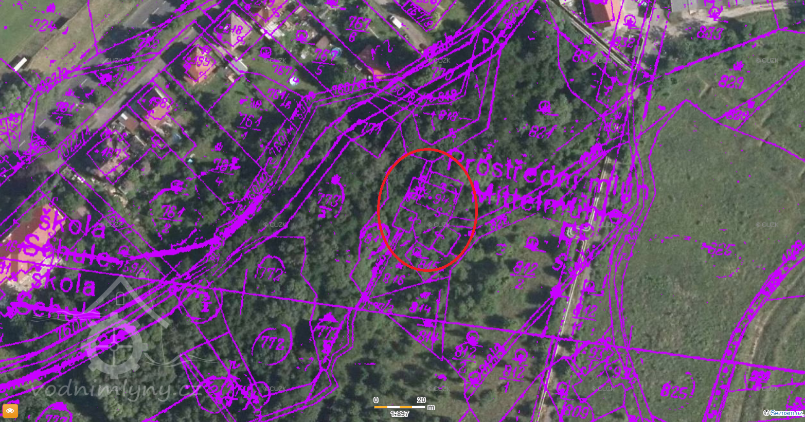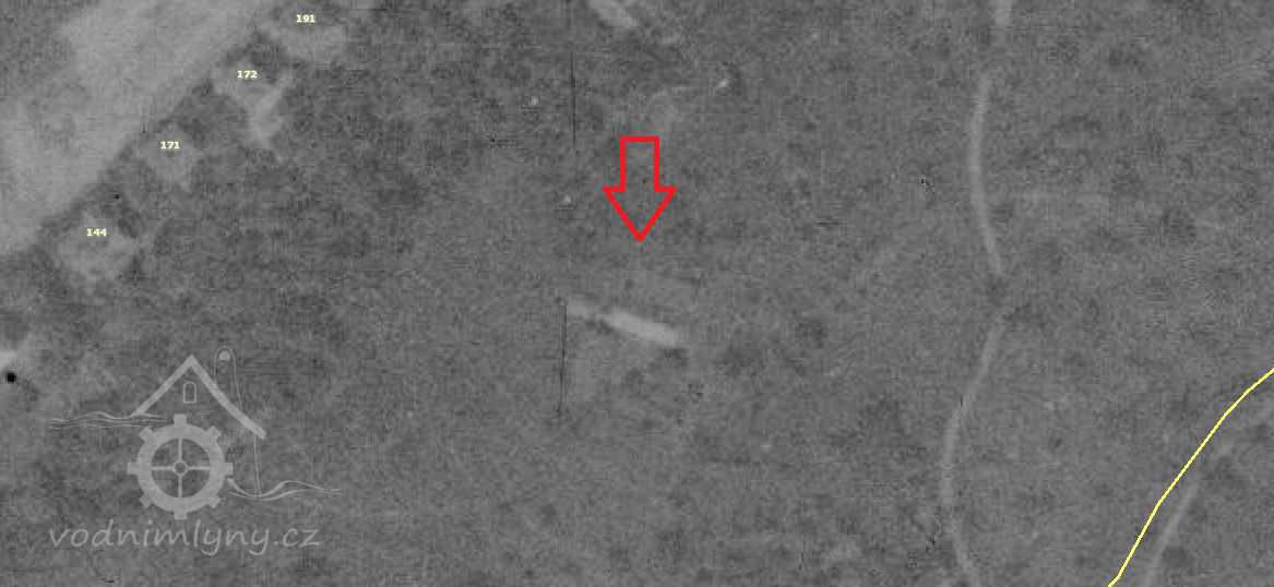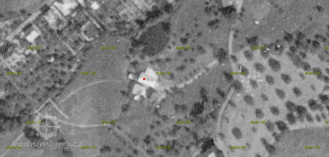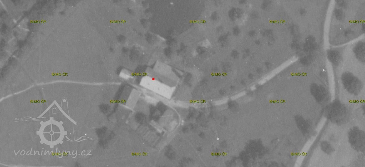 Prostřední mlýn v Janově, na letecké fotografii z roku 1953 již nezřetelný, dnes po něm není ani stopy.