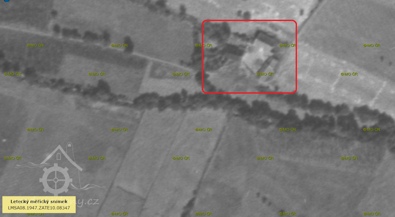 Větší mlýn na samotě severně od Denětic, zanikl mezi lety 1953-1963.