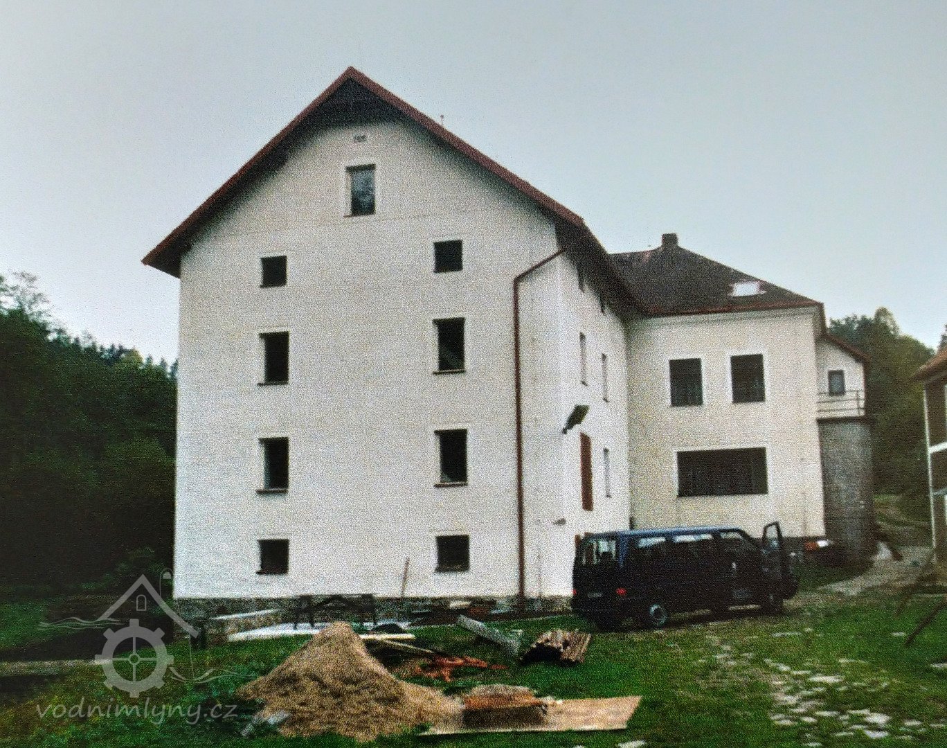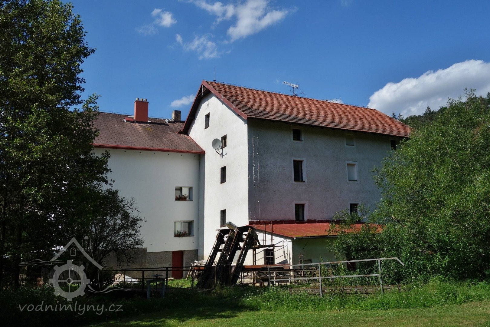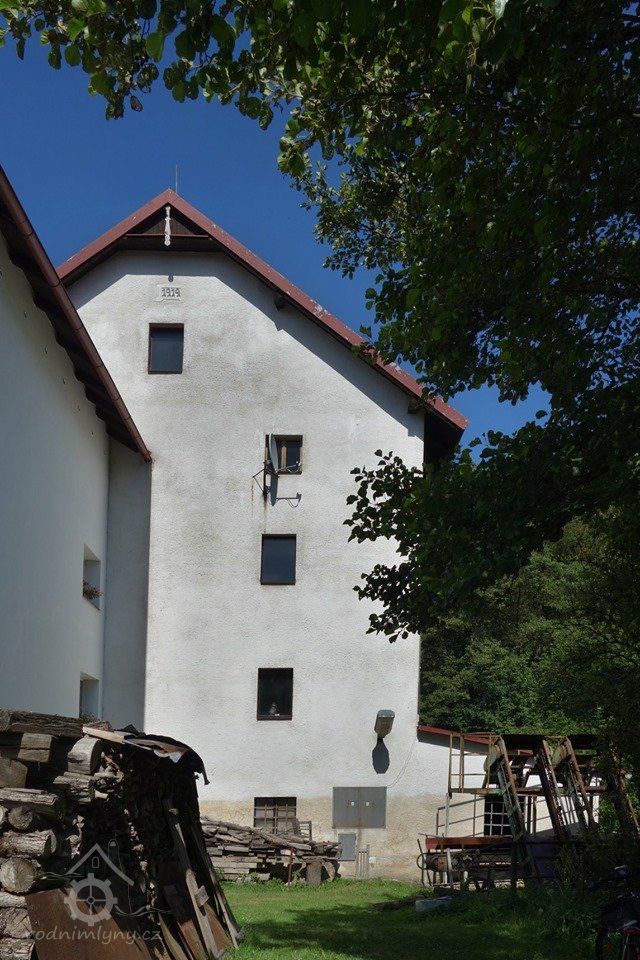 Obytná budova a mlýnice za sebou.
