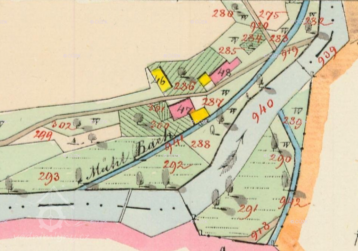 1651 Soupis poddaných podle víry: mlynář Jakub Mařan (54 let), manželka Magdalyna (14), děvka Anna (18), všichni katolíci