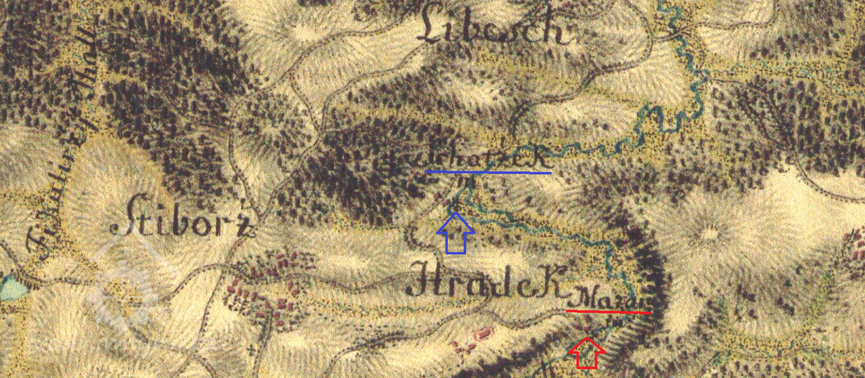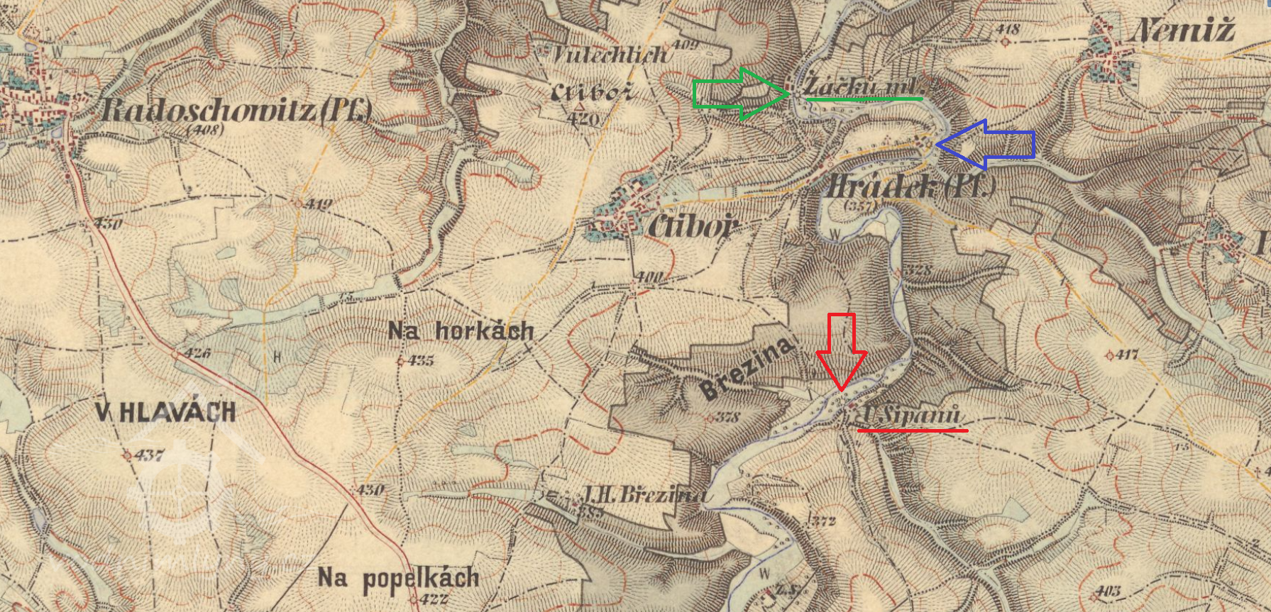400 m západně od kostela sv. Matouše v Hrádku u Ctiboře
