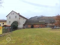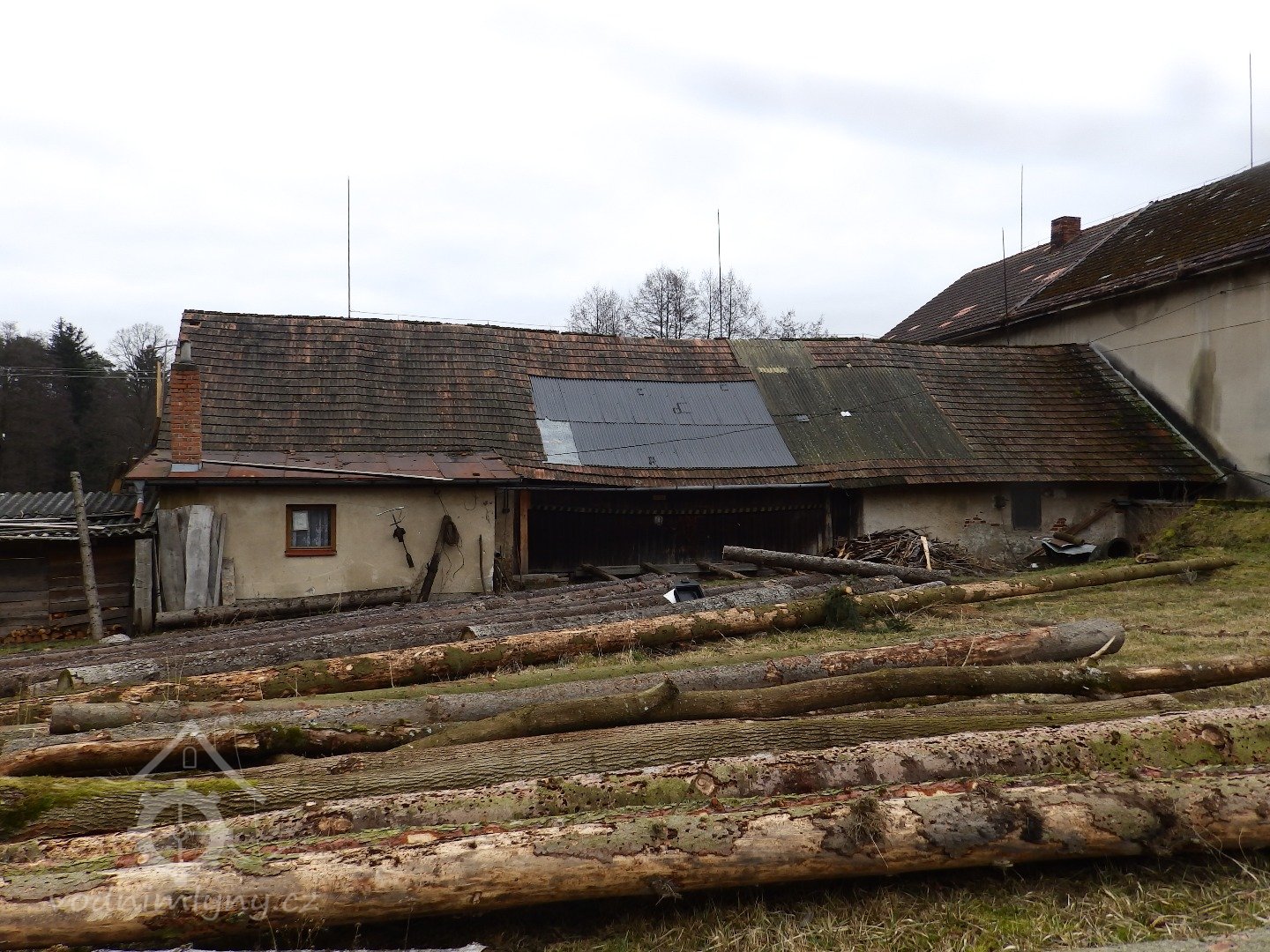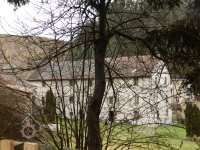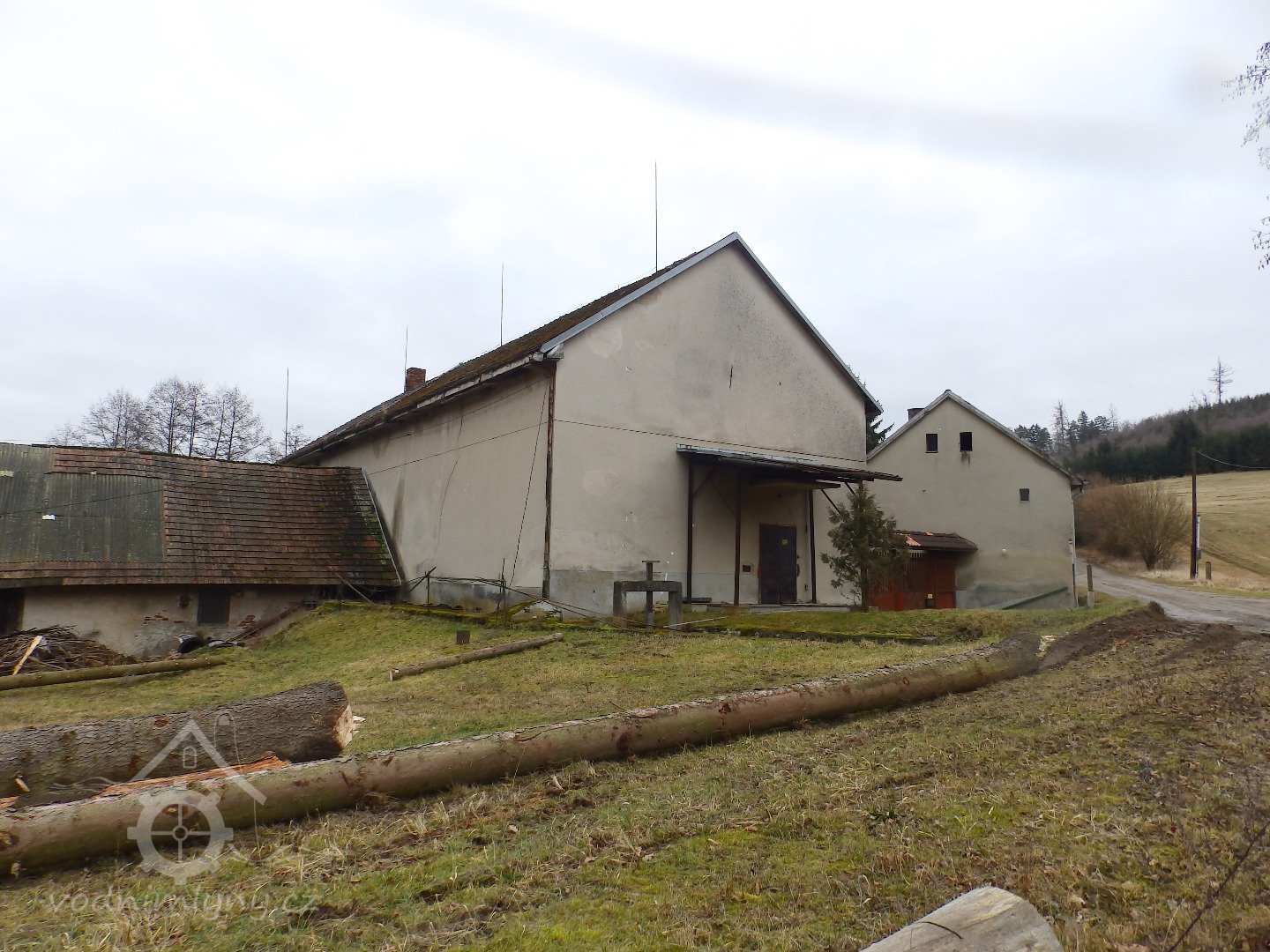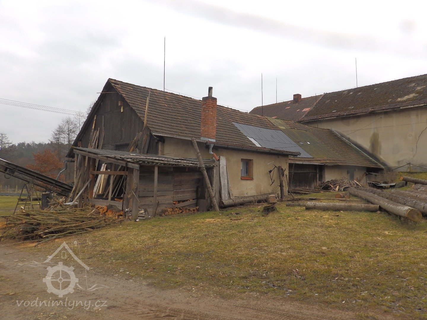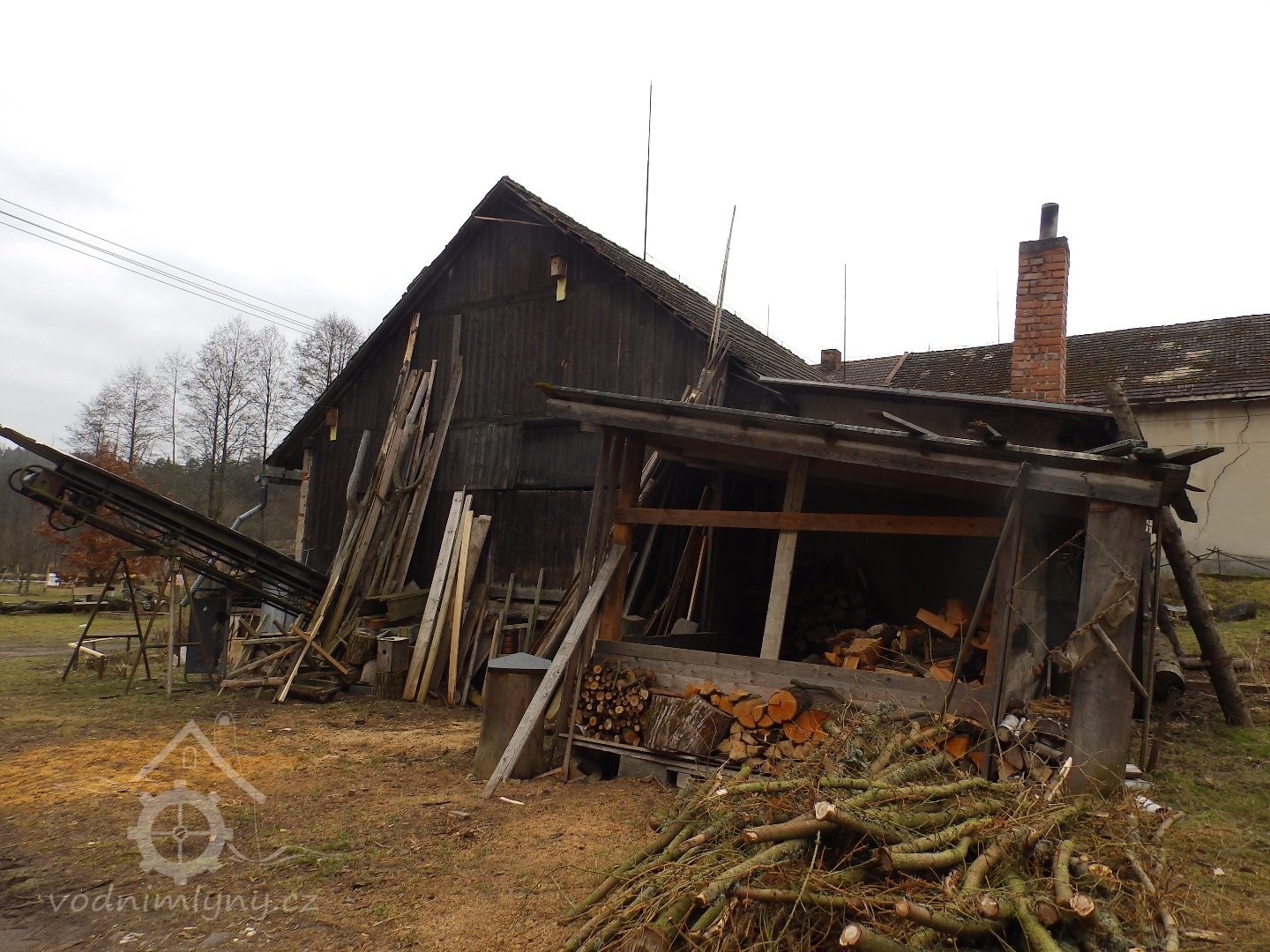 Velká budova obytné mlýnice, v pravém úhlu navazuje přízemní pila a na protější straně hospodářský trakt.