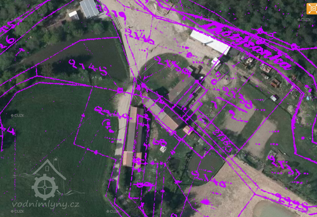 Velký mlýn s pilou naproti kamenolomu (mimo odstřely je volně průchozí) u Bílkovic, ovšem již na Radošovickém katastru. Turbína vyrábí elektřinu pro pohon pily, která je stále v provozu.