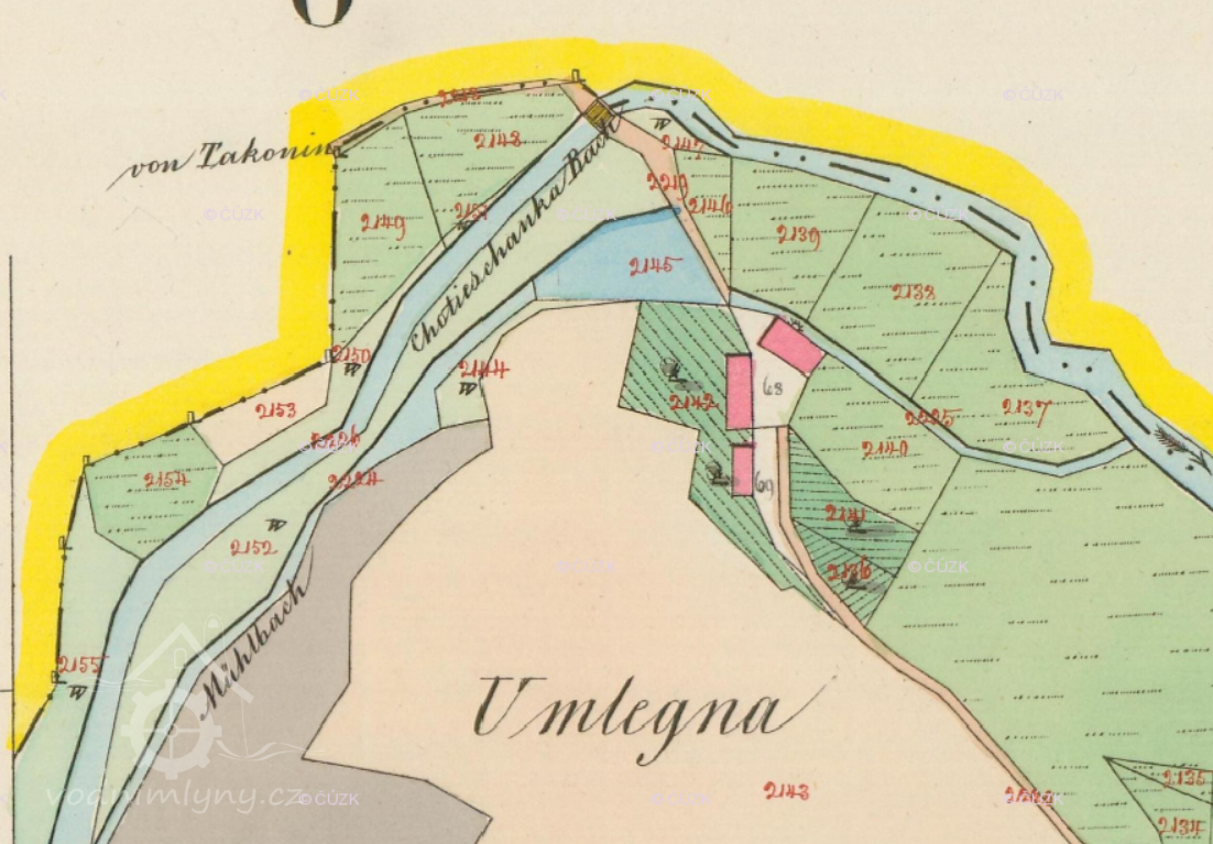 Popis1930: 1 turbína Francis, hltnost 0,275 m3/s, spád 4,2 m, výkon 10 HP