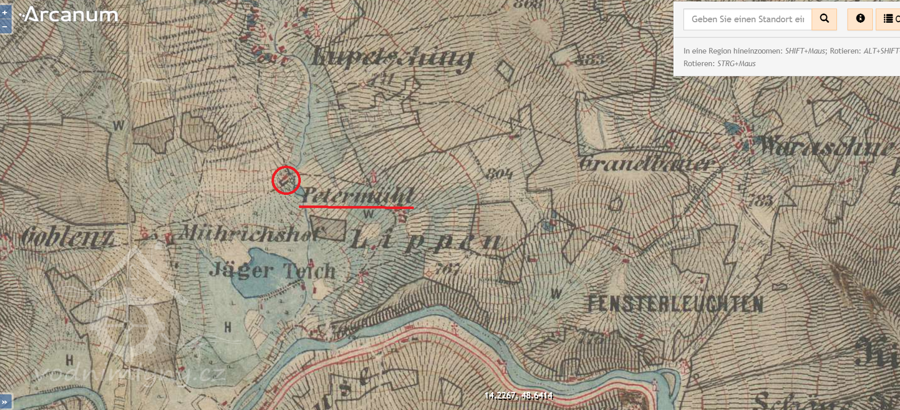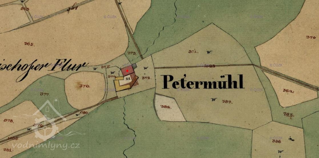 Jinak v současné době pracuji na chronologii držitelů všech usedlostí v okolí Lipna a Slupečné (území současné obce Lipno nad Vltavou), kdy se dá vlastník mlýna podle dostupných gruntovních knih dohledat od roku 1881 zpětně nejméně k roku 1637, možná i dále. Pokud by byl zájem, mohu poskytnout, až bude lokalita Petrova mlýna hotova (hrubý odhad někdy na přelomu roku 2020). V současné době mám zpracováno období 1637 - 1713, kde byly vlastníci (držitelé) následující: 1637 Abraham, později zvaný jako Petermillner, 1649 Kaspar Hasslinger, 1691 Adam Hasslinger a 1708 Frantz Wieltschko (manžel dcery Adama Hasslingera jménem Sophia).