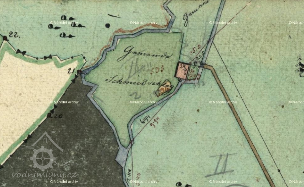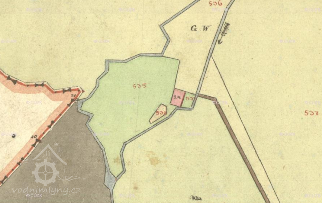 Popis1930: 1 kolo na svrchní vodu, hltnost 0,07 m3/s, spád 3,3 m, výkon 2 HP