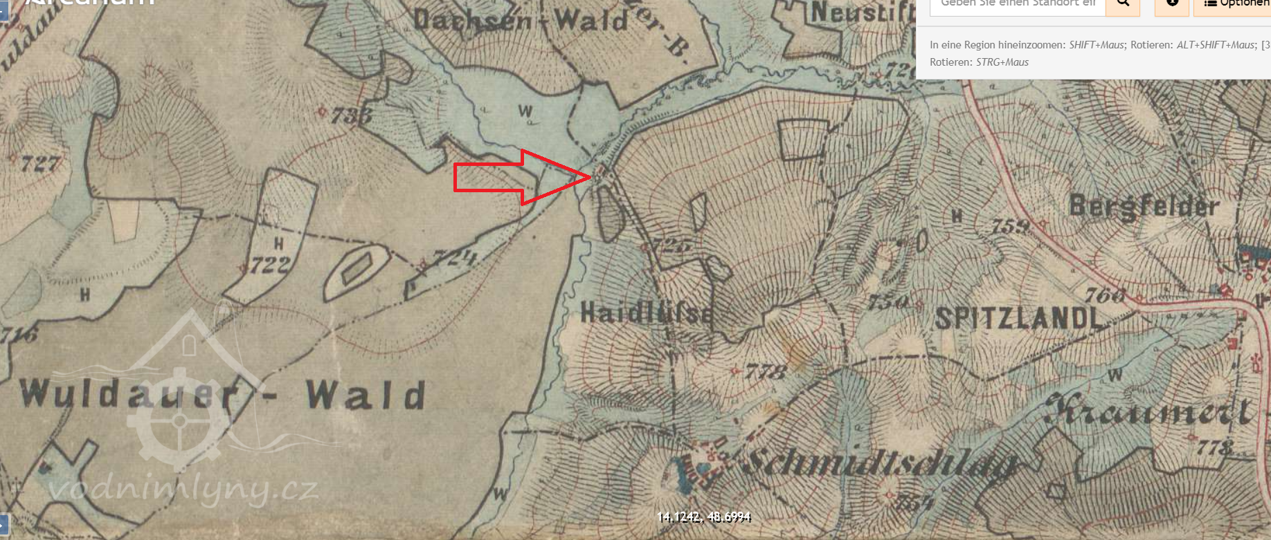 Menší mlýn u Kovářova, dnes zatopený Lipenskou přehradou.