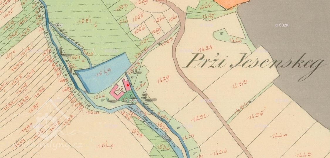 PopisV roce 1930 pohání mlýn 2 kola na svrchní vodu s průtokem 0.135 m3/s, spádem 5.5 m o výkonu 5.6 HP.