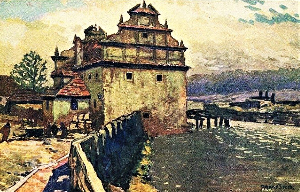 na severní straně domu v Samcově ulici, kde bývala malba pošty v pozadí s poštovními vozy, stál pěkný mlýn čp. 1224/19, býv. Košťálova lázeň, nazývaná tak podle majitele z roku 1417. Na téže straně, kde byla ohradní zeď a vrata, stál mlýn Stárkův, který 18.10.1901 vyhořel.