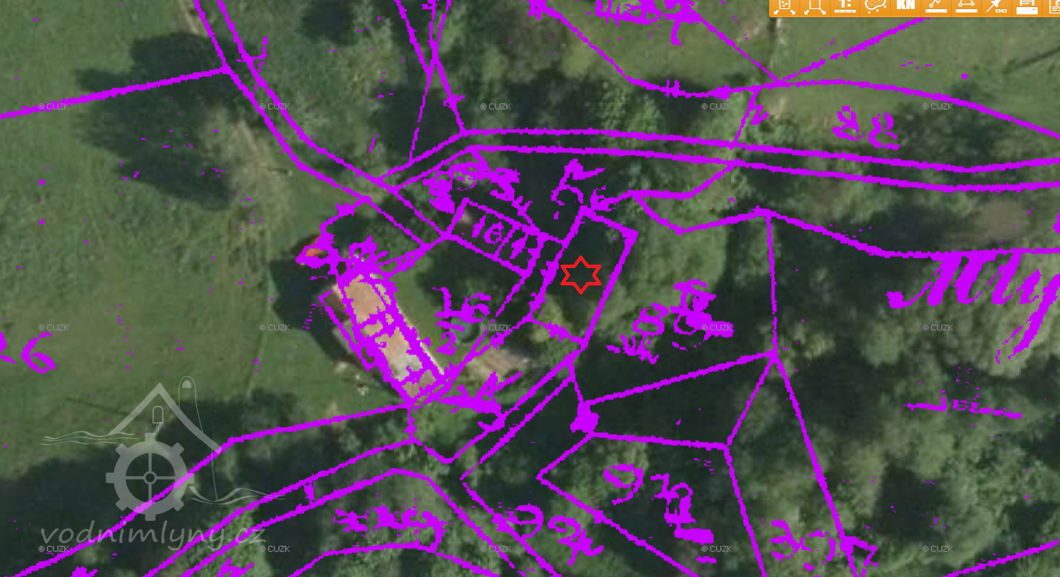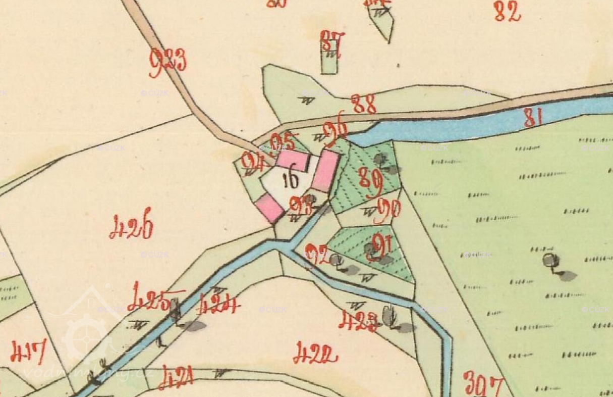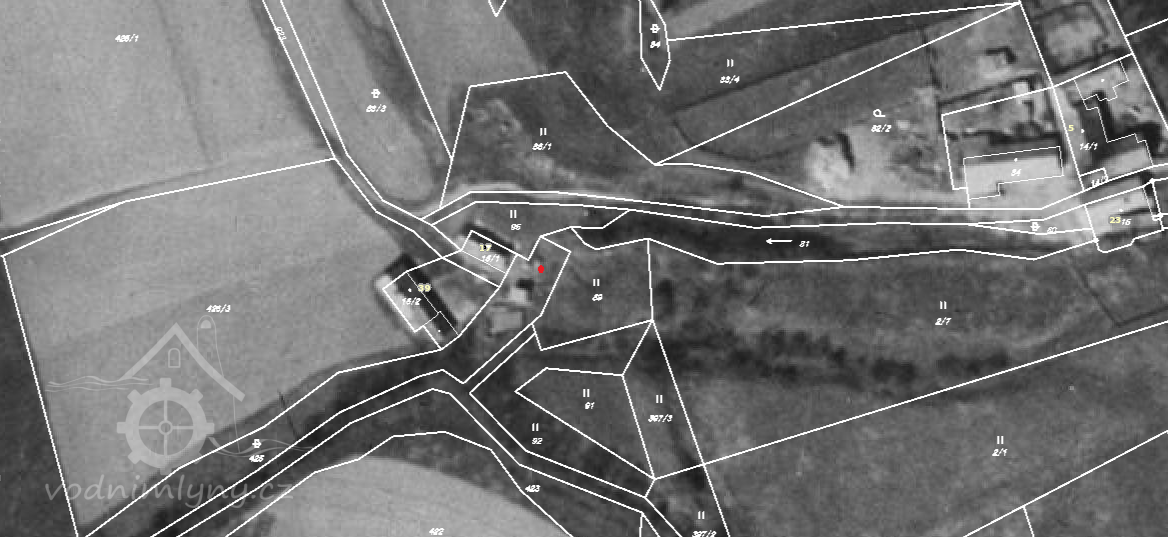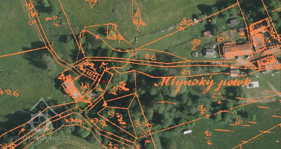 Nad mlýnem býval velký rybník, po jeho vypuštění a zrušení jen malá rezervní nádrž.