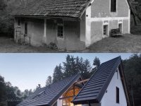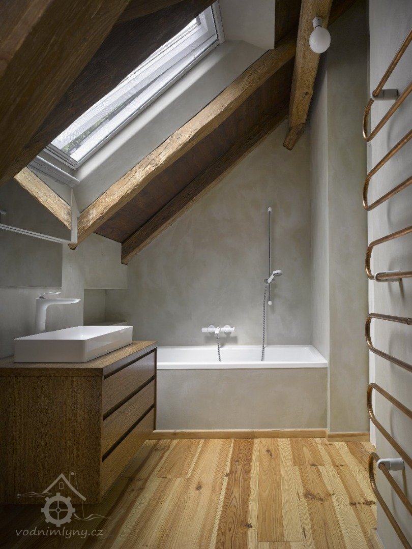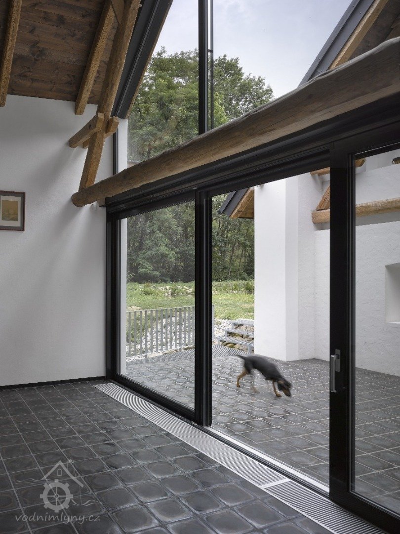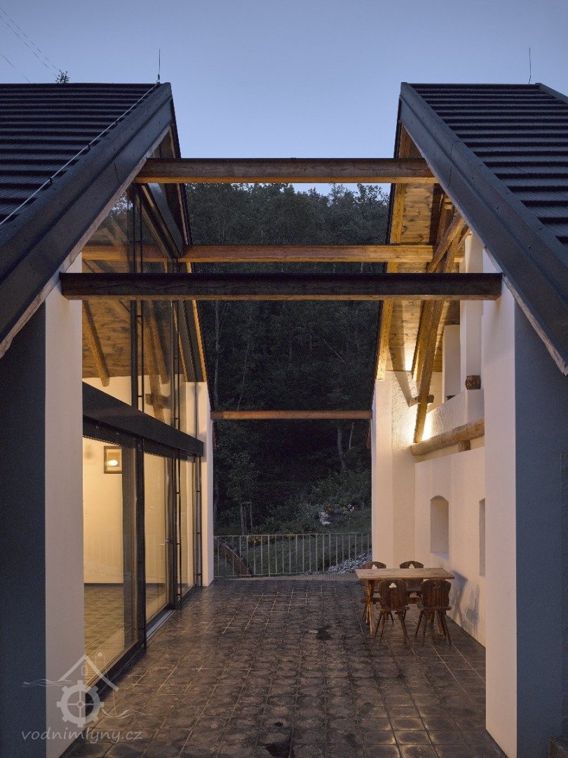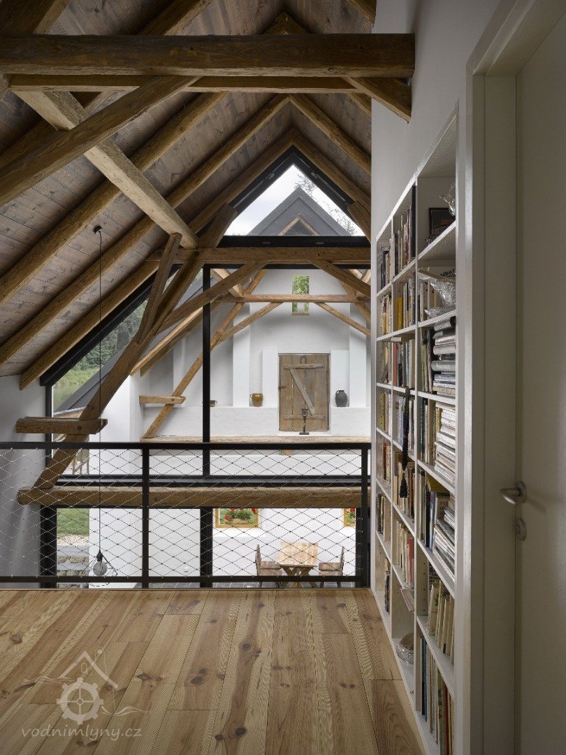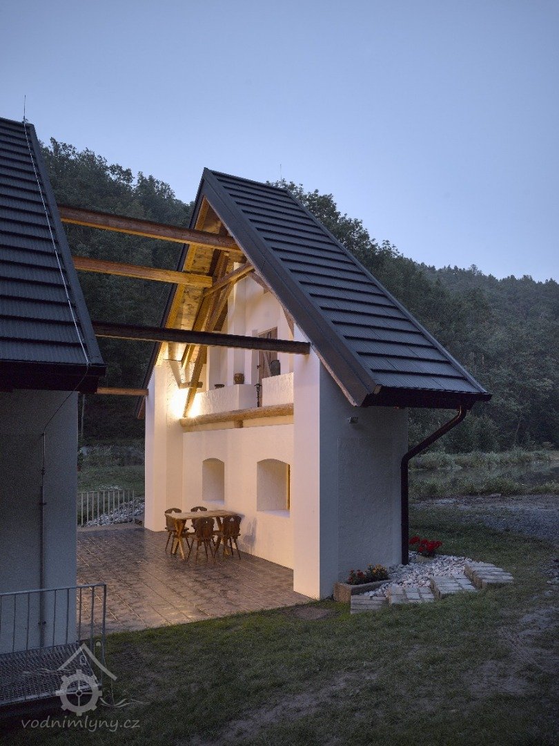 Postmoderně přestavěný historický mlýn. Realizace architektonický ateliér Stempel & Tesař.