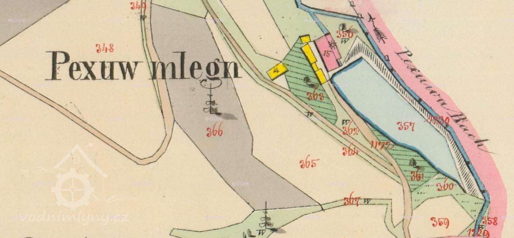 Mlýn na samotě, zvané Pexův Luh pod Nedvězím, v nedávné době opraven, doplněn replikou vodního kola (se zpětným chodem a bez vantrok!) a přestavěn v odvážném postmoderním stylu podle projektu architektonického ateliéru Stempel & Tesař. Této radikální a z molinologického hlediska asi kontroverzní úpravě však nelze upřít architektonické kvality. Přestavba se dostala až do finále České ceny za architekturu 2018.